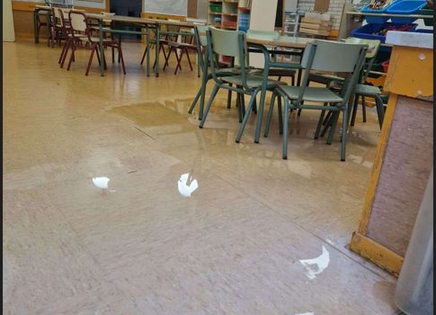 Guardia Ciivl y Policía Local investigan en suceso. Se sabe que los vándalos accedieron al centro por la parte del huerto, y se dedicaron a enchufar la manguera, dejándola abierta en el interior de una de las clases, que acabó inundada.