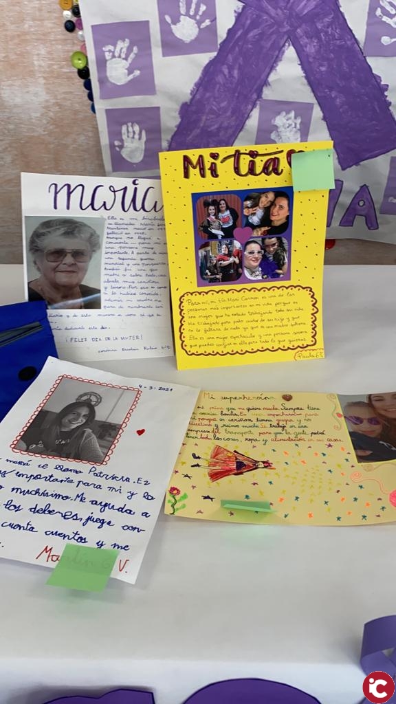Coincidiendo con el Día Internacional de la Mujer, y enlazando con la última sesión del taller, en la que se trabajó específicamente la igualdad y el rol de género, el centro educativo organizó la exposición Mujeres importantes en nuestras vidas, en la que todos los alumnos y alumnas y sus familias han participado con fotografías y dibujos de mujeres importantes para ellos.