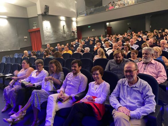 Entre el público, los cargos festeros de este año (capitanes, capitanas, embajadores y bandereras), además de la pregonera Teresa Planelles y la presidenta de la Junta Festera de Moros y Cristianos, Marga Sebastià, acompañada de parte de su directiva.