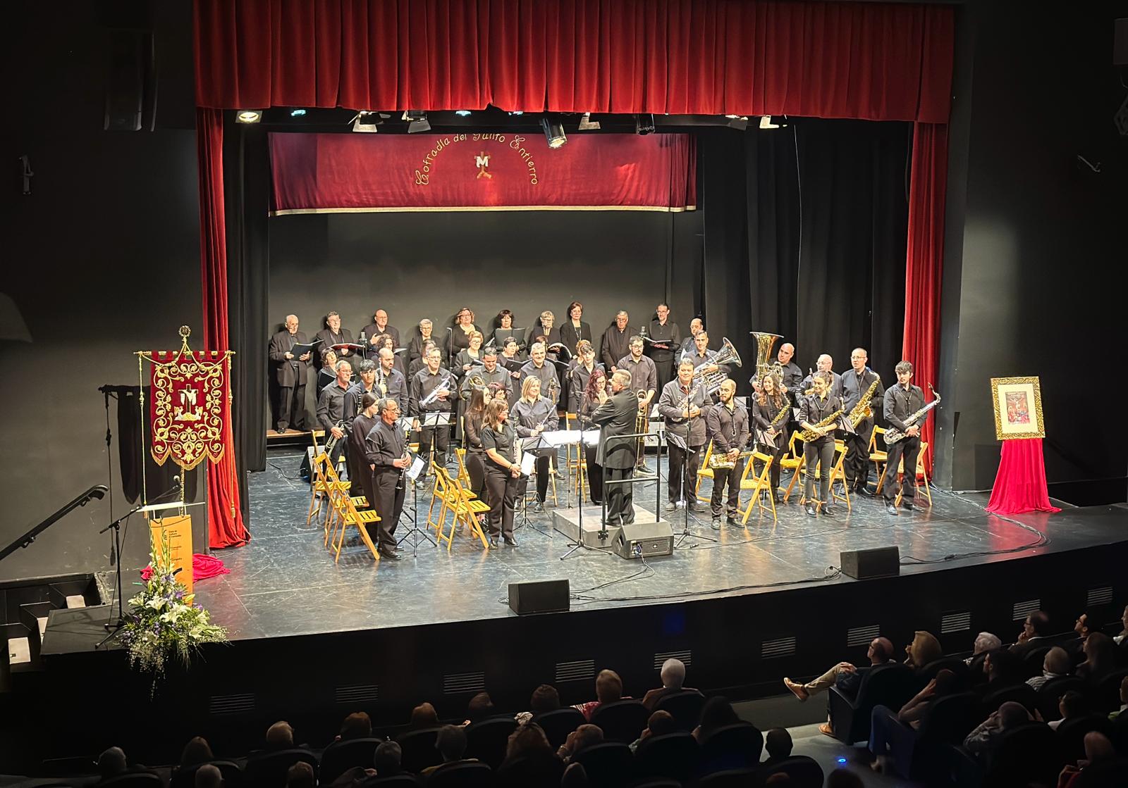 Antes del pregón, como es de rigor, integrantes de la Colla Larraix han protagonizado un pequeño pasacalles desde la plaza al interior del auditorio, y una vez dentro el público ha podido disfrutar de un concierto de música sacra protagonizado al alimón por la Coral Casino y la Societat Musical Nova, dirigidas por José Tomás Moñinos.