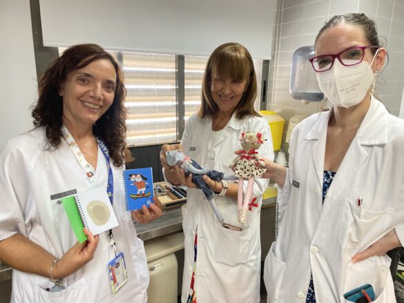 Pero con “Ambli” y “Pía” “los niños se adhieren mejor al tratamiento, juegan con los muñecos y aprenden a usar el parche de una manera lúdica y sus padres también se implican mejor en todo el seguimiento de la ambliopía”, explica la enfermera Cecilia Sirvent. Además, la Unidad de Oftalmología está preparando unas bolsas de tela en las que aparecen dibujadas las caras de estas dos ratitas para que los menores puedan guardar sus parches. En la consulta también se les entregan unas graciosas libretas con imágenes que simulan emojis de ojos para que los niños, ayudados por sus padres, anoten cuándo se ponen y quitan los parches e incluso los puedan pegar una vez que los han usado. “Cuando vuelven a consulta les pedimos que nos traigan las libretas y cuantas más nos traen eso significa que han seguido mejor el tratamiento y que antes se van a curar, les explicamos, animándoles a traer muchas libretas completas”, añade Sirvent.
