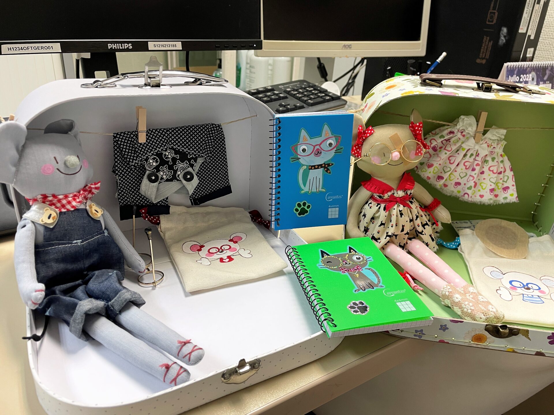 Pero con “Ambli” y “Pía” “los niños se adhieren mejor al tratamiento, juegan con los muñecos y aprenden a usar el parche de una manera lúdica y sus padres también se implican mejor en todo el seguimiento de la ambliopía”, explica la enfermera Cecilia Sirvent. Además, la Unidad de Oftalmología está preparando unas bolsas de tela en las que aparecen dibujadas las caras de estas dos ratitas para que los menores puedan guardar sus parches. En la consulta también se les entregan unas graciosas libretas con imágenes que simulan emojis de ojos para que los niños, ayudados por sus padres, anoten cuándo se ponen y quitan los parches e incluso los puedan pegar una vez que los han usado. “Cuando vuelven a consulta les pedimos que nos traigan las libretas y cuantas más nos traen eso significa que han seguido mejor el tratamiento y que antes se van a curar, les explicamos, animándoles a traer muchas libretas completas”, añade Sirvent.