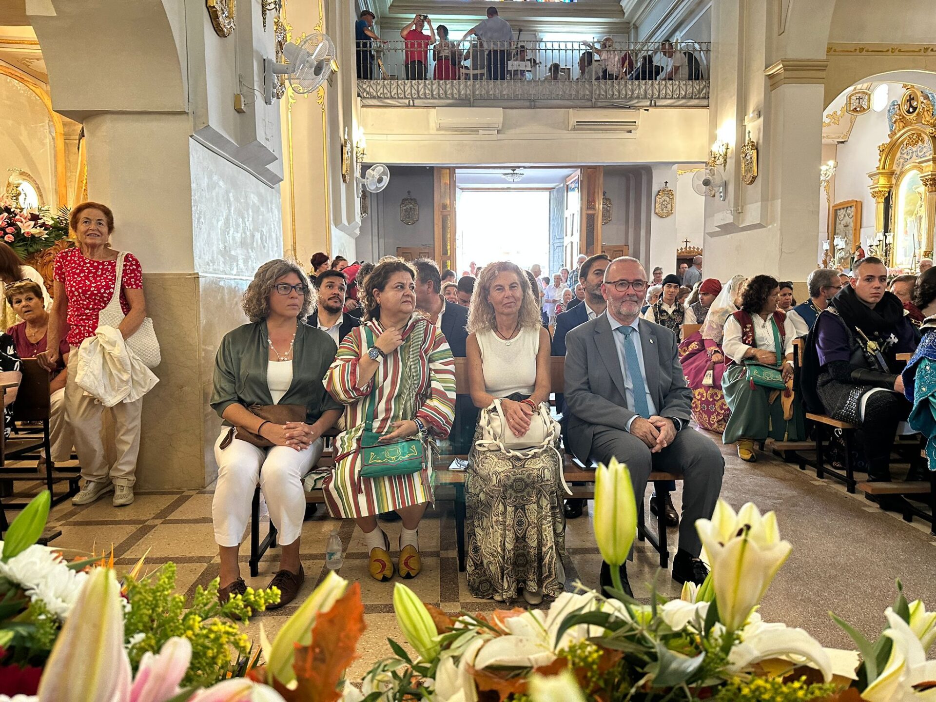 Pero el cambio de la climatología ha permitido, eso sí, que se haya podido llevar a cabo la ofrenda floral y de alimentos a Santa Teresa, a la que ha seguido una Misa especial con asistencia de todos los cargos festeros y autoridades locales, encabezadas por el alcalde Juanjo Berenguer, acompañado en esta ocasión por concejales del PP, PSPV-PSOE, Vox y Per El Campello.