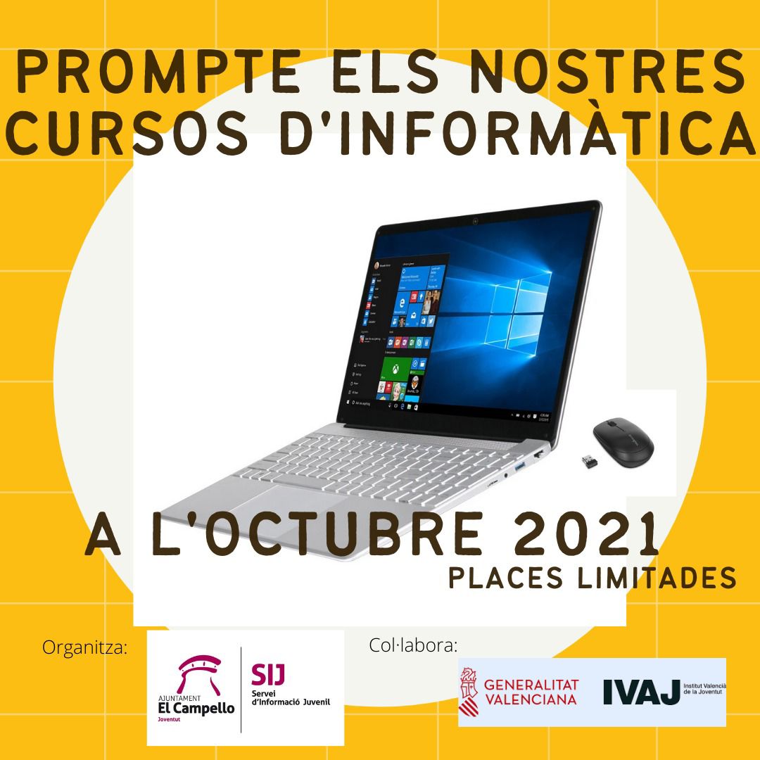 La Concejalía de Juventud que dirige Cristian Palomares (PP), ha diseñado para el mes de octubre unos talleres de informática, gratuitos, con el objetivo de fomentar el ocio educativo entre los jóvenes, concretamente la adquisición de habilidades y destrezas que mejoren el acceso a la Información y su utilización en la vida cotidiana.