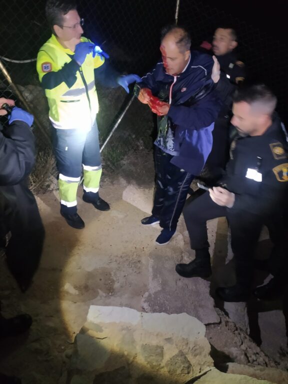 El martes por la noche, el tripulante de una embarcación que encalló en las rocas del yacimiento arqueológico de La Illeta dels Banyets tuvo que ser rescatado por efectivos policiales, y trasladado al Hospital de San Juan para ser atendido de una herida por la que sangraba abundantemente.