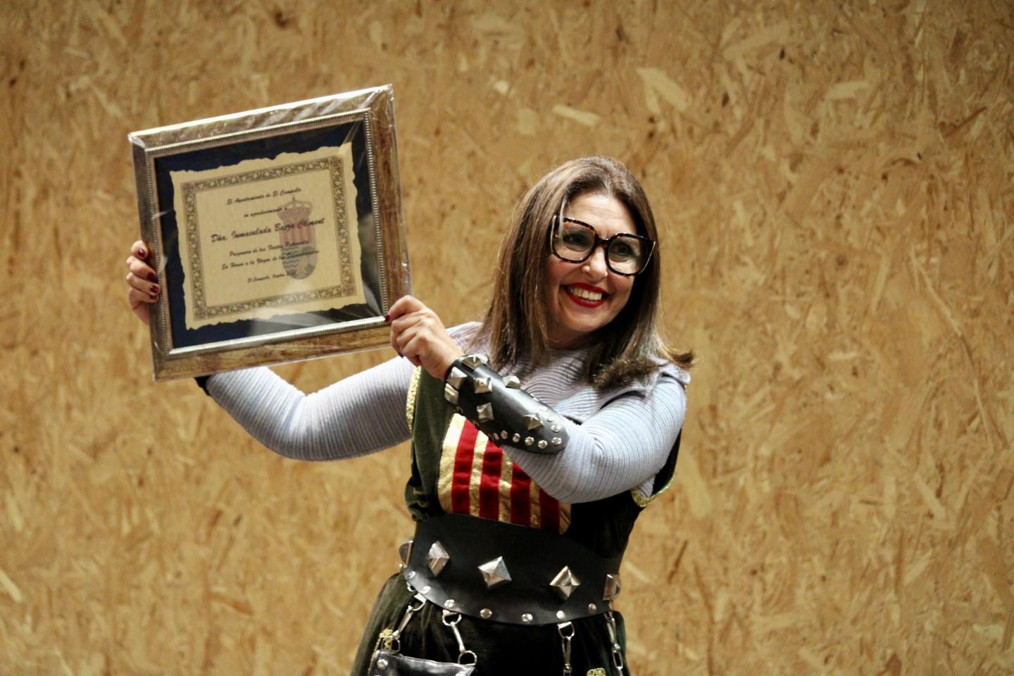El encargado de presentar a la pregonera fue el alcalde, Juanjo Berenguer, que centró su intervención en resaltar los valores humanos y personales que rodean a Inmaculada Baeza, “una mujer muy vinculada a los Moros y Cristianos, en los que participa desde cuando ni siquiera existían oficialmente esas fiestas como tales”.