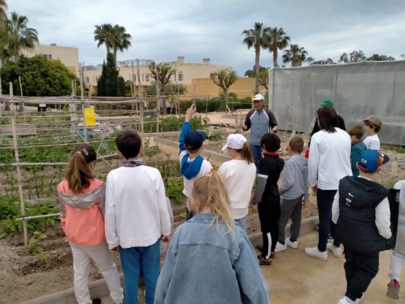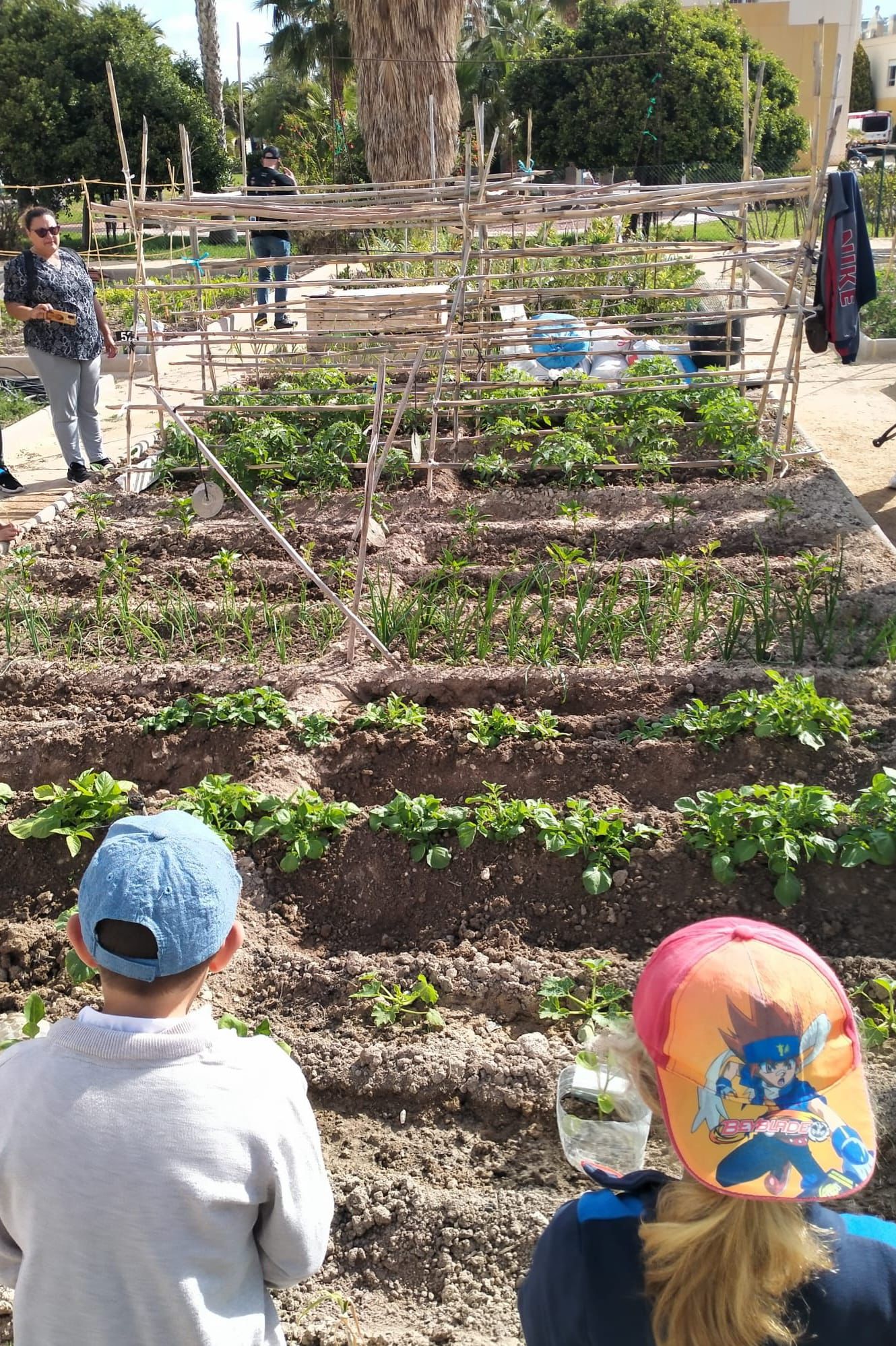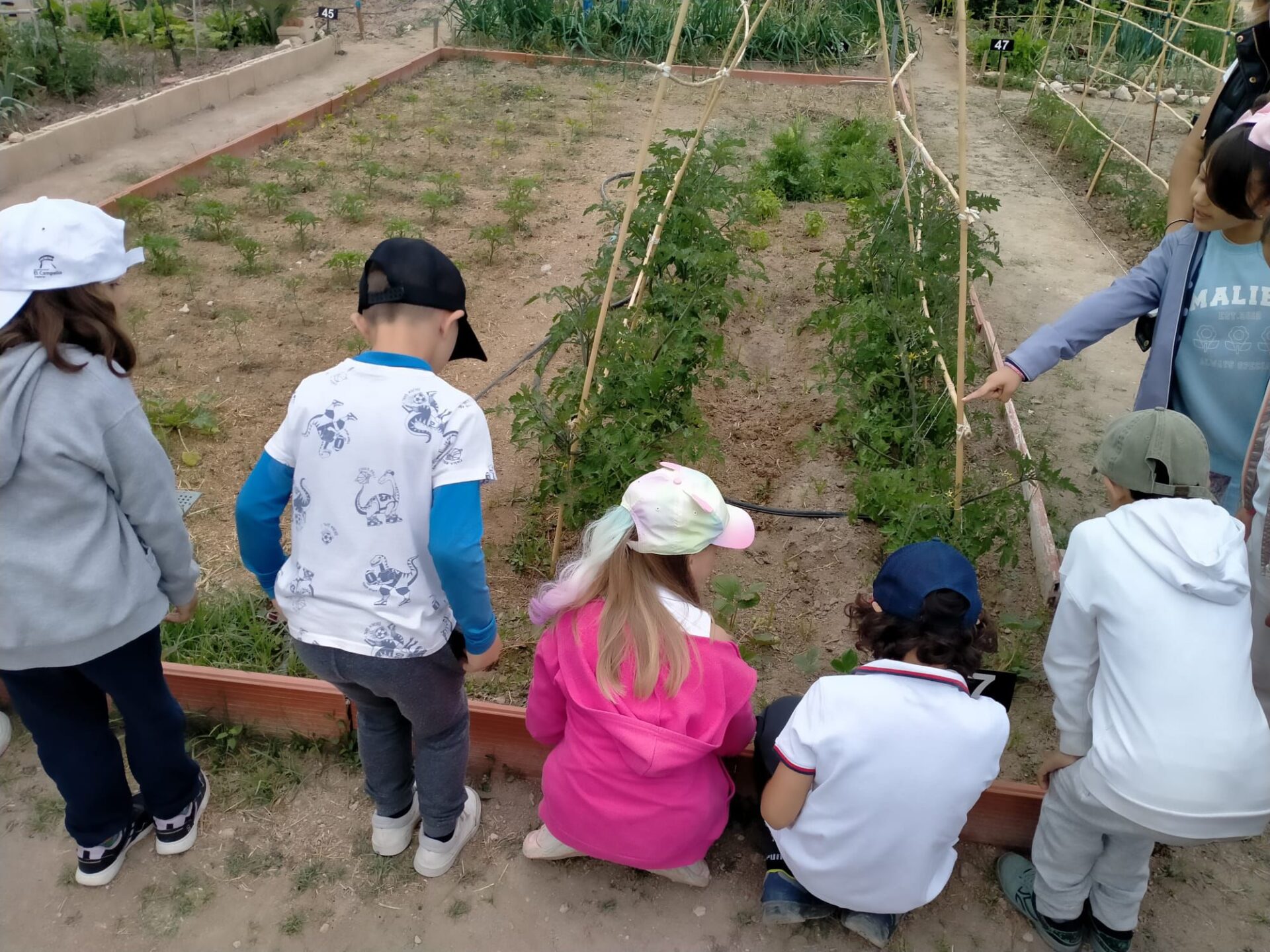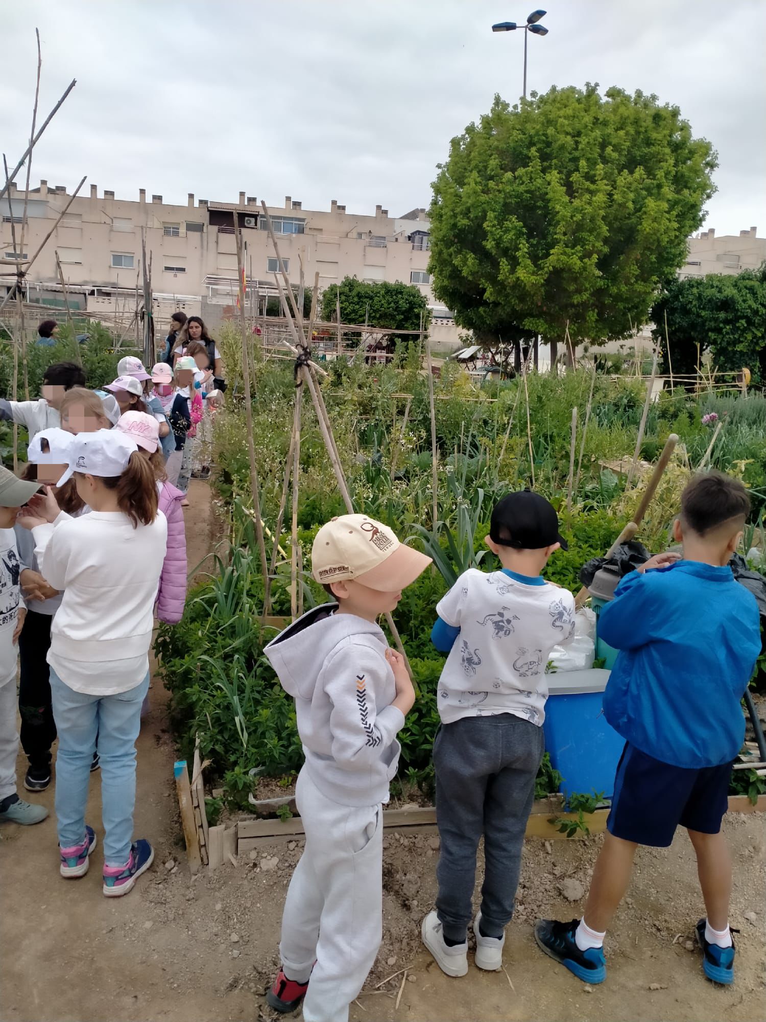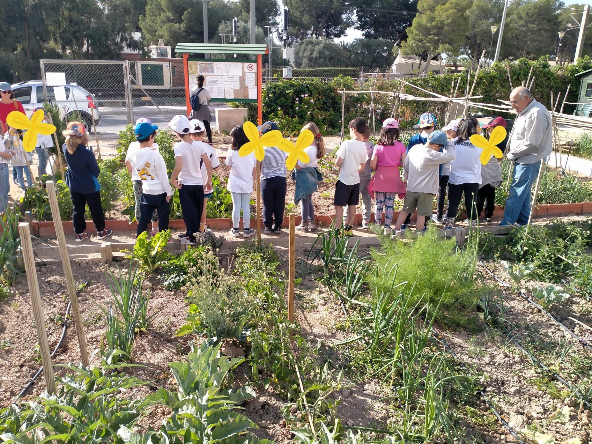 Los alumnos de primero y segundo de primaria del colegio Pla de Barraques han visitado el huerto urbano de El Campello para conocer in situ materias relacionadas con la agricultura, creación de un huerto e identificación de cultivos.