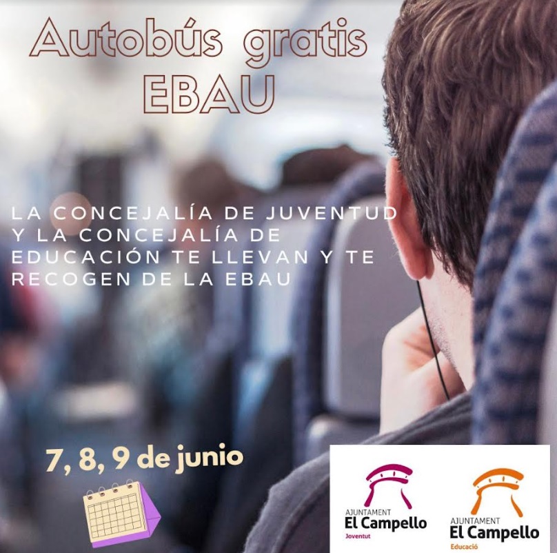 Las concejalías de Juventud y Educación, a cargo de Cristian Palomares y Dorian Gomis (PP), han organizado de forma conjunta un servicio gratuito de autobús a disposición del alumnado para asistir a las pruebas de la EBAU.