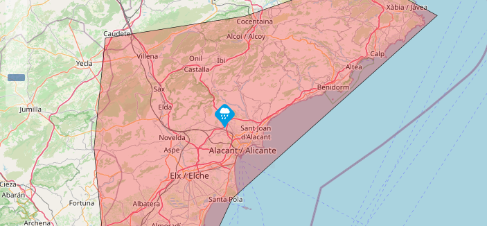 Durante la jornada del viernes 23 de mayo se esperan precipitaciones de carácter tormentoso en toda la provincia de Alicante que se prolongarán hasta media tarde. En las zonas costeras del litoral podrían acumularse 80 litros en 12 horas, con máximos de 40 en una hora. En el interior se mantiene la previsión de tormentas con precipitación de hasta 20 litros en una hora. Para más información consulte los consejos a la población en esta app y en la web de 1·1·2 CV.