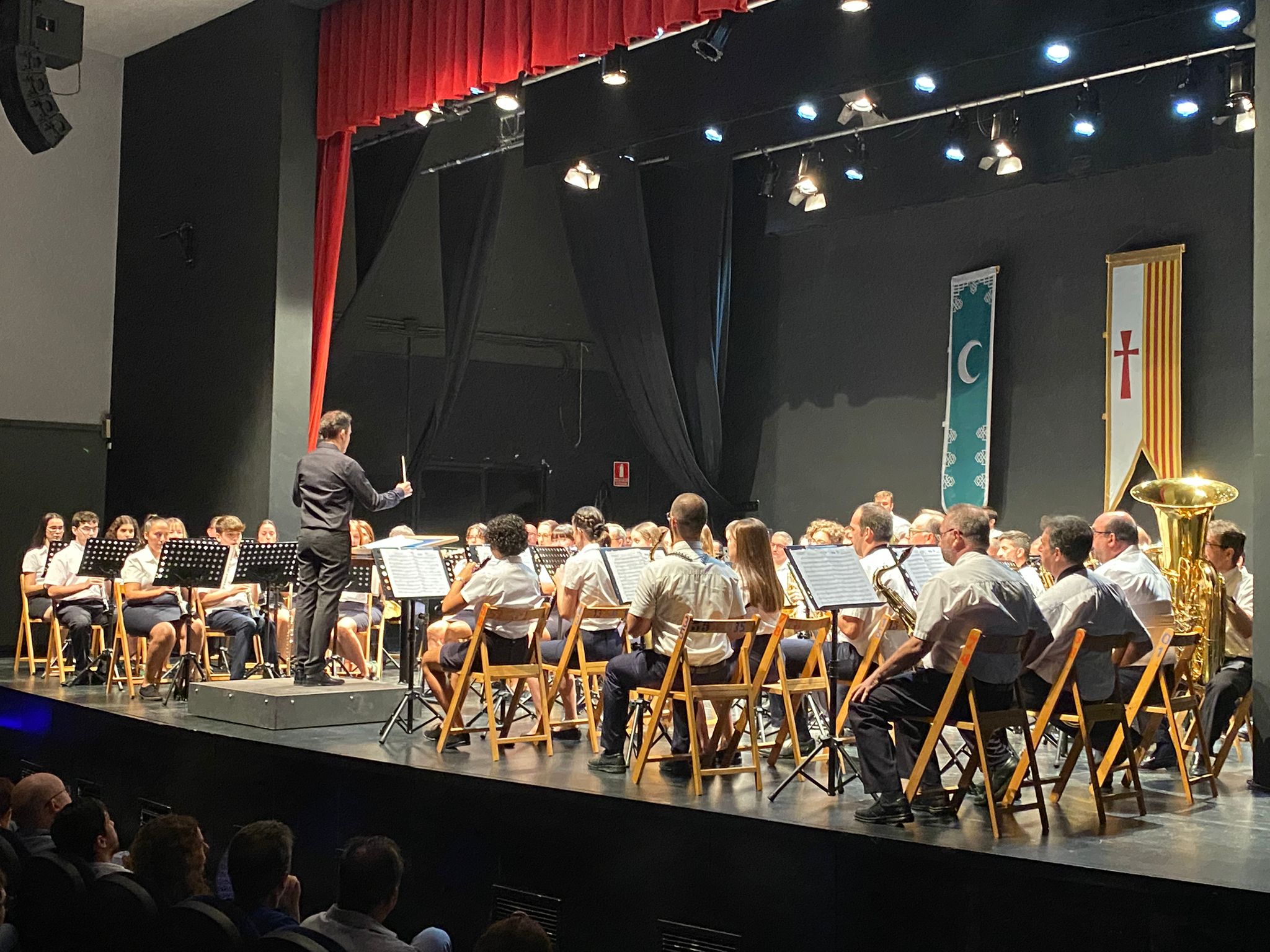 El concierto siguió con un homenaje al acto del desembarco, embajada y fanfàrria, la entrada de bandas (pasodoble “La Replaça”), y la entrada mora y cristiana, con la marcha cristiana “Signum” y la mora “Xabat”.