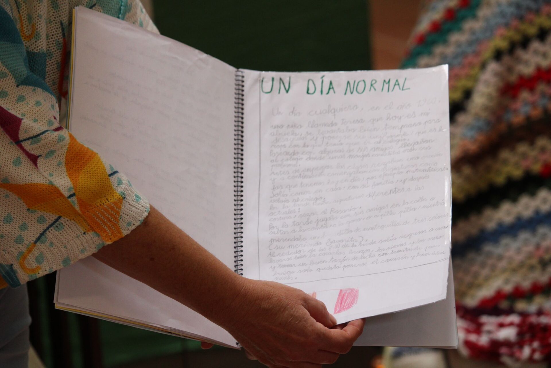 En enero, la compañía visitó los colegios que se han sumado a la campaña, y motivó al alumnado para crear un álbum familiar colectivo. En este trabajo han de buscar una historia familiar, de sus abuelos, y llevarla escrita en un folio que se incorporará a la exposición a la que se dará forma.