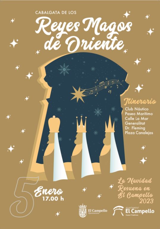 Con un largo recorrido que comenzará en las instalaciones del Club Náutico a las 5 de la tarde y finalizará en la Plaza de Canalejas o Plaza de la Iglesia, el jueves se celebrará la tradicional cabalgata de Reyes Magos en El Campello, que discurrirá por el Paseo Marítimo, Carrer la Mar, Generalitat y Doctor Fleming.
