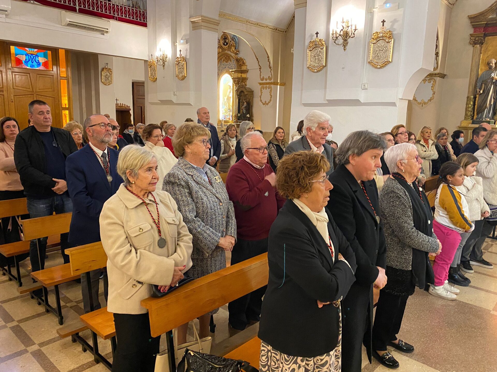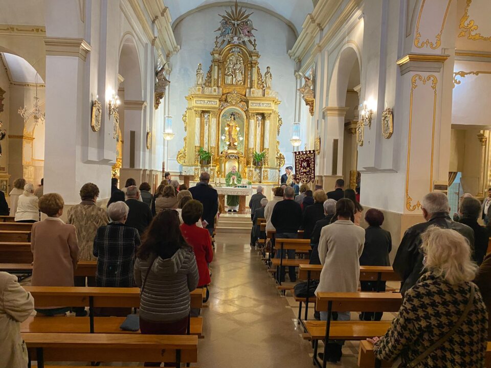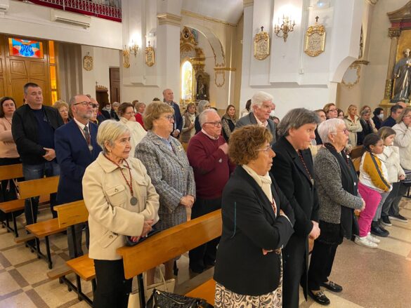 La ceremonia de imposición de la medalla se llevó a cabo en el templo, y contó con la presencia de autoridades locales, `presididas por el alcalde Juanjo Berenguer y el concejal de Fiestas y Tradiciones Cristian Palomares (PP), representantes de la Cofradía y familiares y amigos.