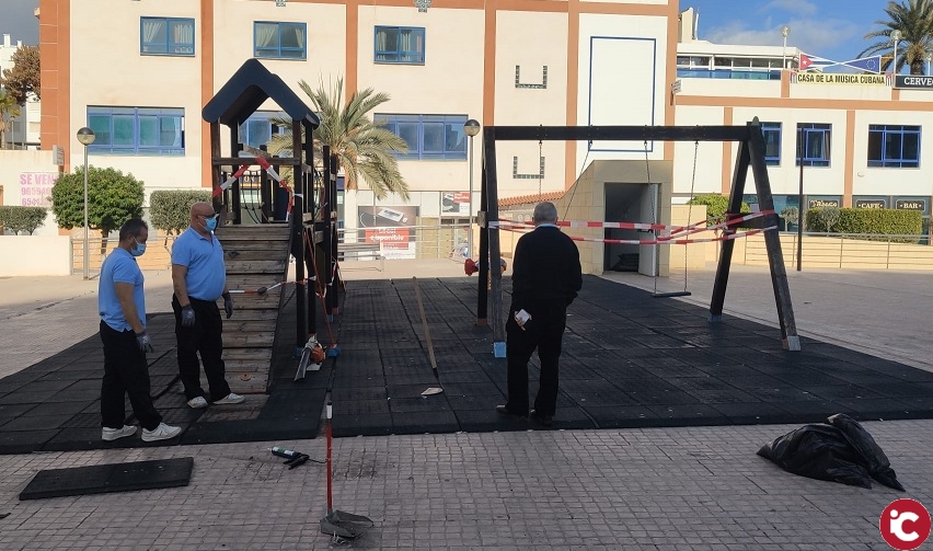 Tras la recuperación integral del área infantil del Parque Central Municipal, el mirador de Cala Baeza, y la zona de juegos y Plaza de los Besos, la concejalía de Servicios y Mantenimiento, dirigida por el primer teniente de alcalde, Julio Oca (Cs) trabaja en la rehabilitación del resto de parques infantiles del municipio.