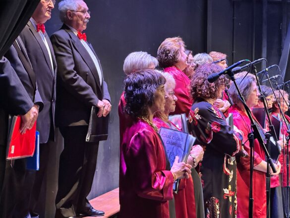 Con un repertorio muy navideño que emocionó a los asistentes, la Coral Casino de El Campello ofreció el sábado su tradicional concierto de Navidad, en esta ocasión con la colaboración de L’Harmonia d’Alacant y la participación de la soprano Claudia Menor y el barítono Pedro Lluch.