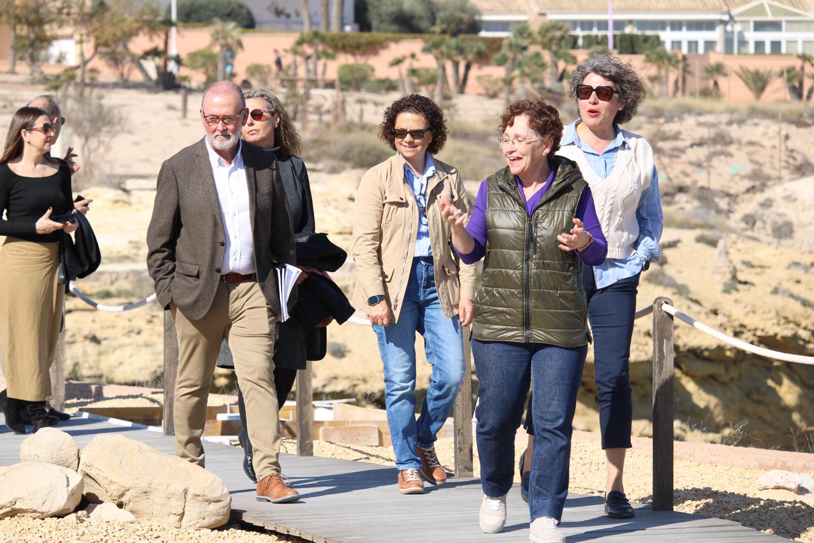 La comitiva oficial que visitó el yacimiento estaba integrada, además de por Carmen Sellés, por el alcalde de El Campello, Juanjo Berenguer; la primer teniente de alcalde y también diputada provincial Lourdes Llopis, la concejala de Turismo, Marisa Navarro, y parte del equipo de profesionales responsables de su conservación, como Adoración Martínez, arqueóloga de la Fundación MARQ con puesto de trabajo permanente en el yacimiento; Dolores Sanchís, restauradora y licenciada en Bellas Artes, y Rafael Pérez, director del área de Arquitectura de la Diputación Provincial.