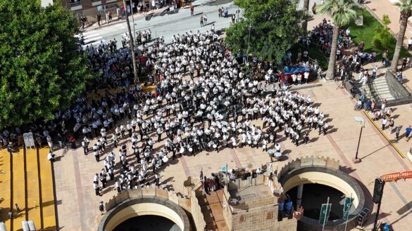 Herminia Ripoll Martínez se llama. Es profesora de música en el instituto “L’Allusser” de Mutxamel, trompista y cantante, y ha sido la directora invitada hoy para que cientos de músicos interpretaran el Himno de las Fiestas de Moros y Cristiano de El Campello, tras una “entrada de bandas” que se ha celebrado con mucha gente en el recorrido y un ambiente festivo de mucha animación.
