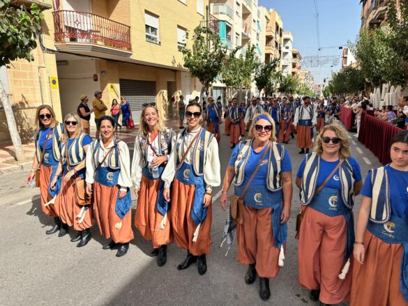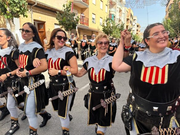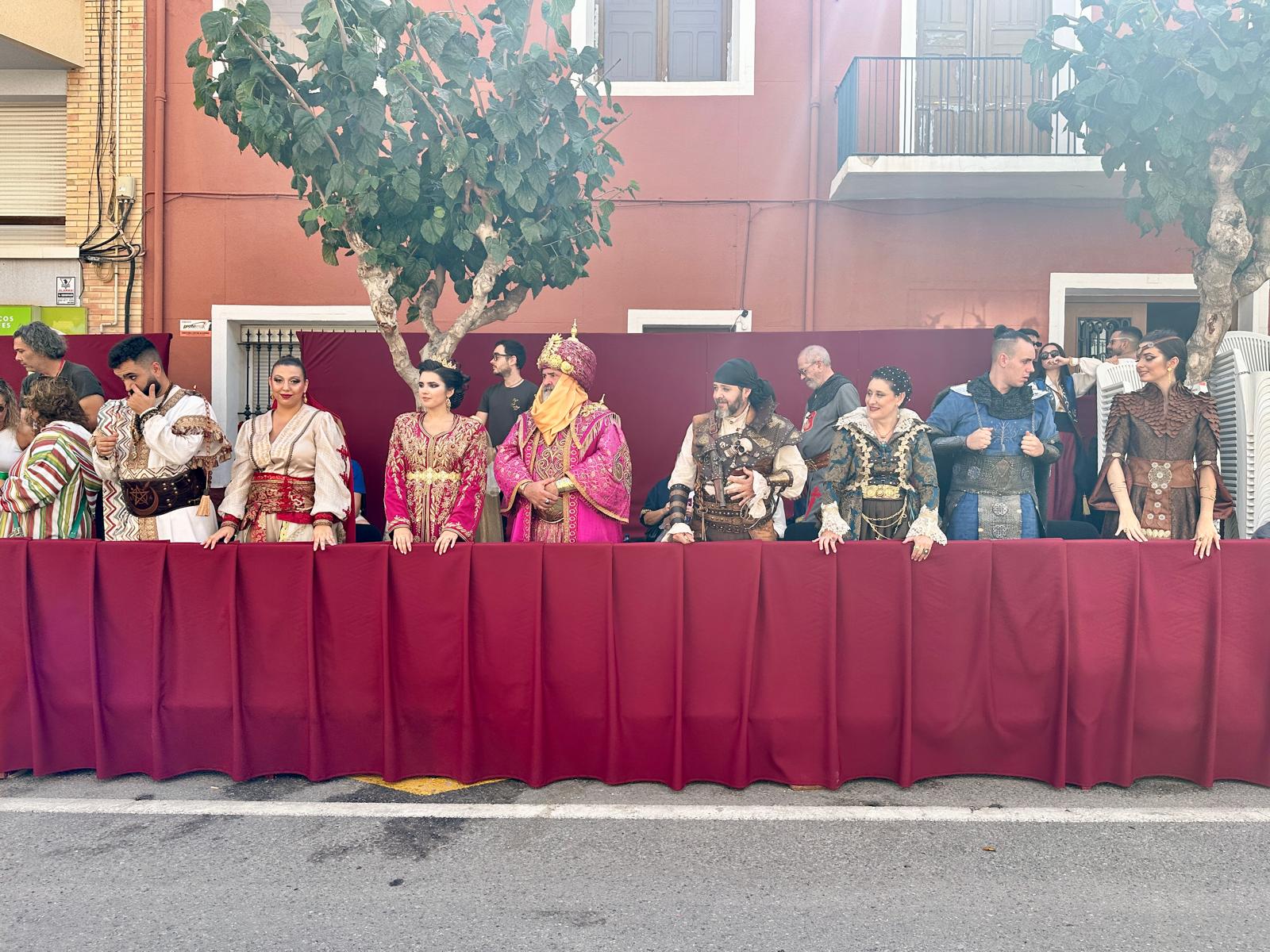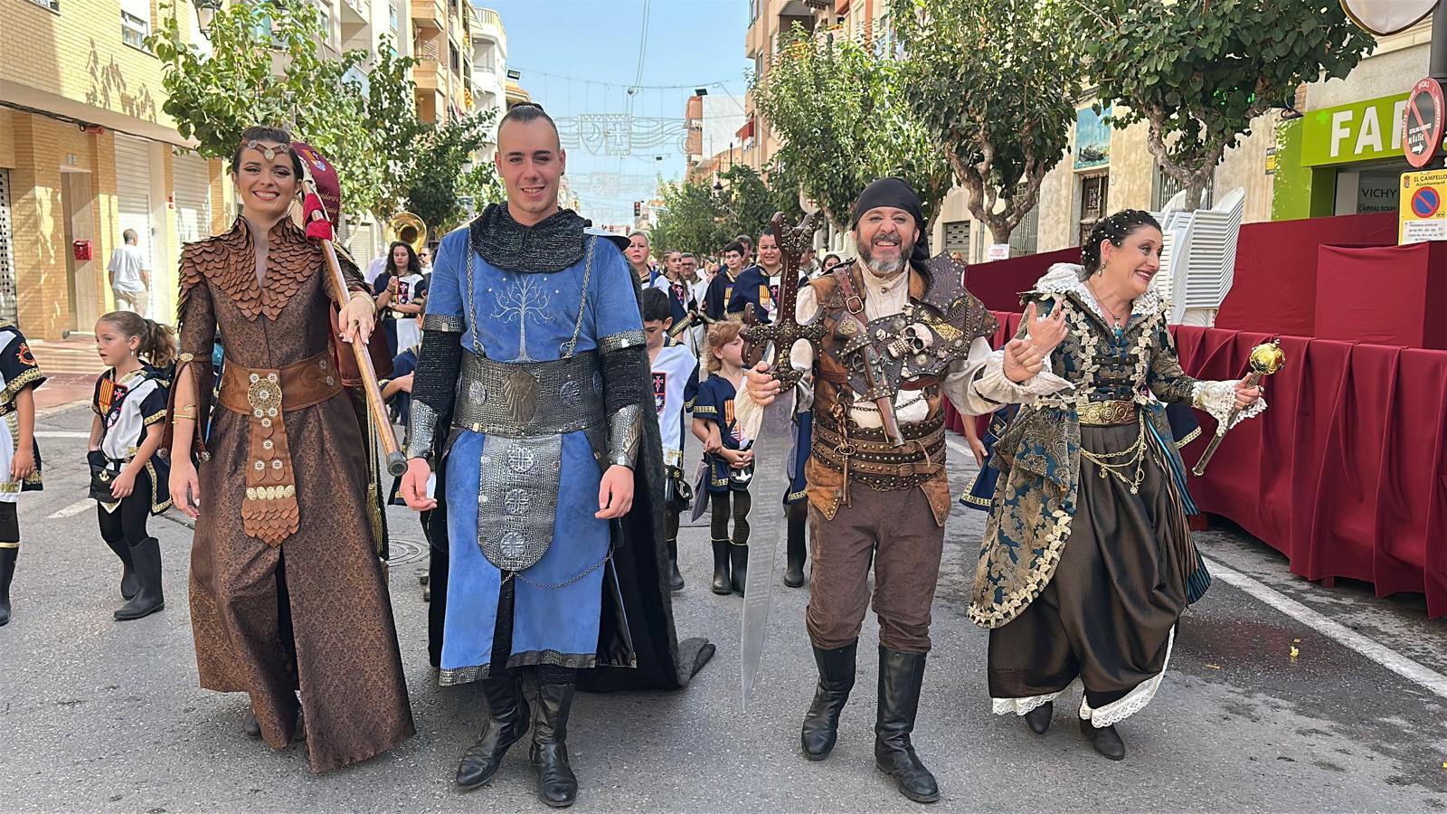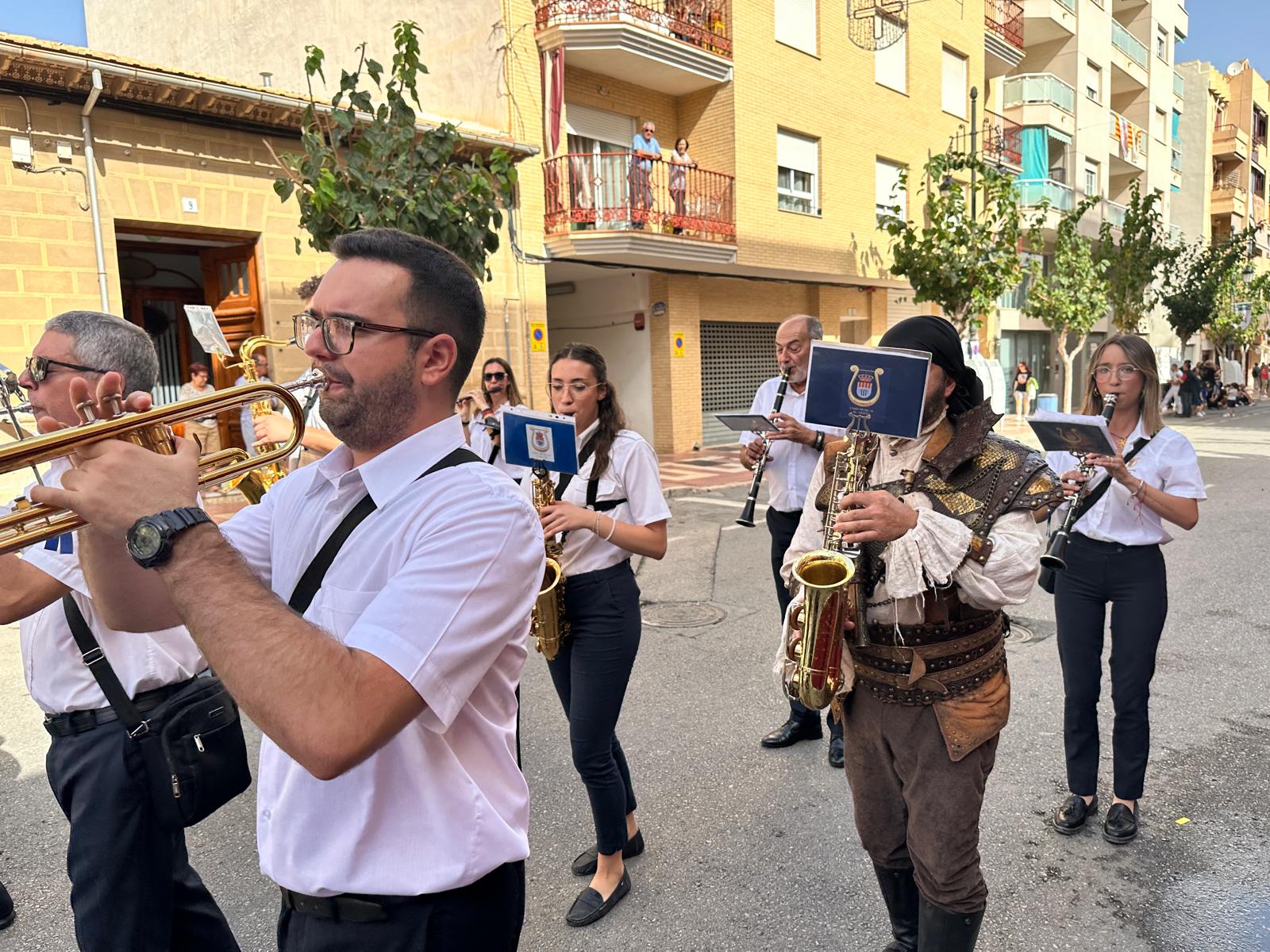 La “entraeta” es uno de los desfiles que más gustan a los festeros de El Campello, porque es un momento de reencuentro, algo más informal y muy divertido. Sin boatos, sin apenas maquillaje y con vestimenta cómoda, todos cubren el recorrido al son de la música que tocan las bandas. Ni siquiera en tribuna hay asientos, salvo para losm8 cargos festeros, que son los primeros en desfilar precisamente para saludar al resto de los participantes.