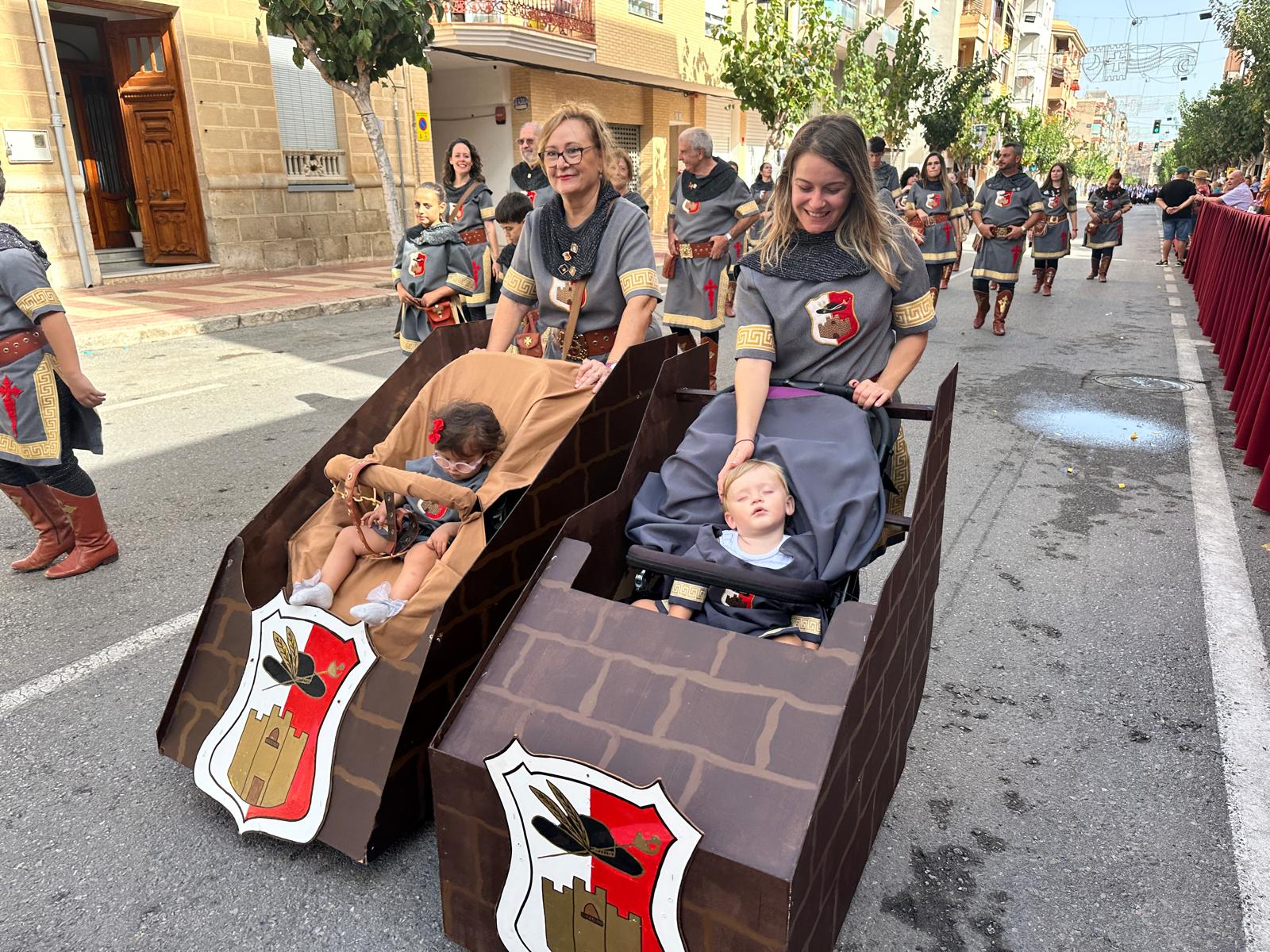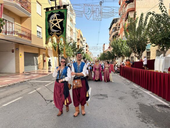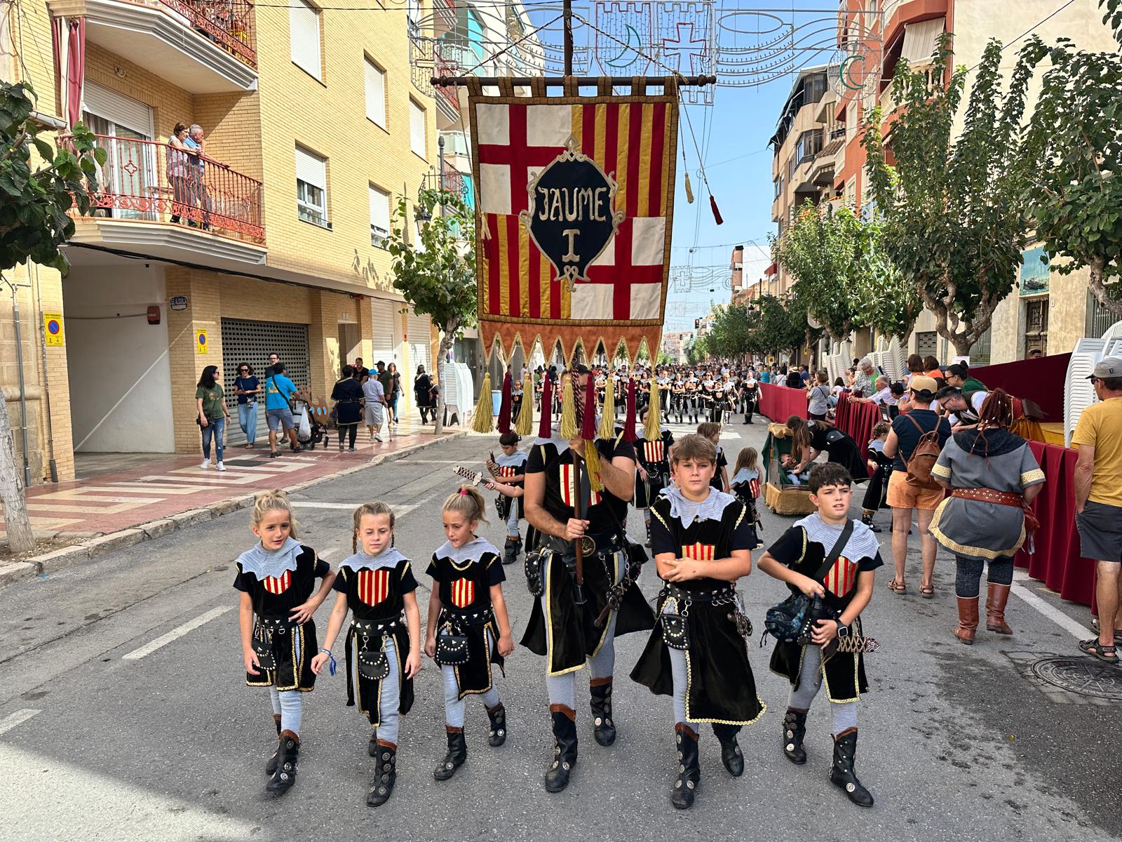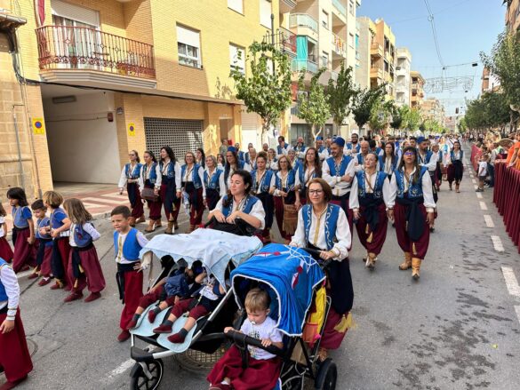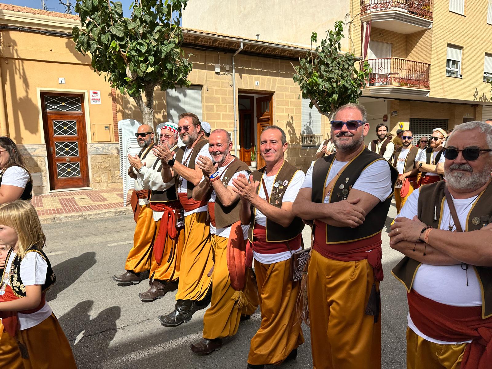 La “entraeta” es uno de los desfiles que más gustan a los festeros de El Campello, porque es un momento de reencuentro, algo más informal y muy divertido. Sin boatos, sin apenas maquillaje y con vestimenta cómoda, todos cubren el recorrido al son de la música que tocan las bandas. Ni siquiera en tribuna hay asientos, salvo para losm8 cargos festeros, que son los primeros en desfilar precisamente para saludar al resto de los participantes.