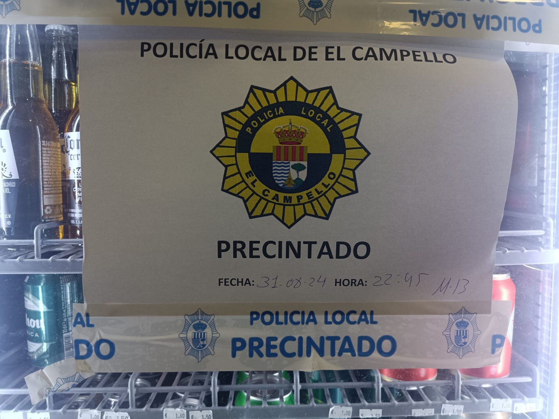 La Policía Local de El Campello precinta expositores y máquinas expendedoras de bebidas de un local 24 horas que vendía alcohol a menores