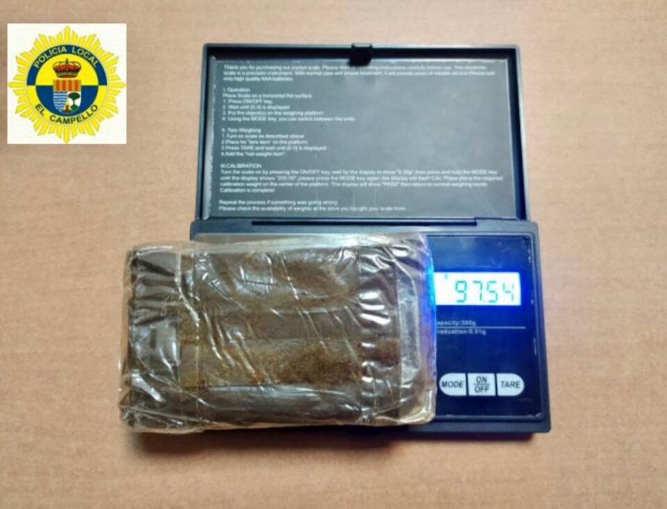 Tras dar el alto al vehículo, los agentes procedieron a realizar indagaciones, y al proceder al registro hallaron en su interior dinero en efectivo y 100 gramos de hachís, cantidad muy superior a la que se presume para consumo propio.