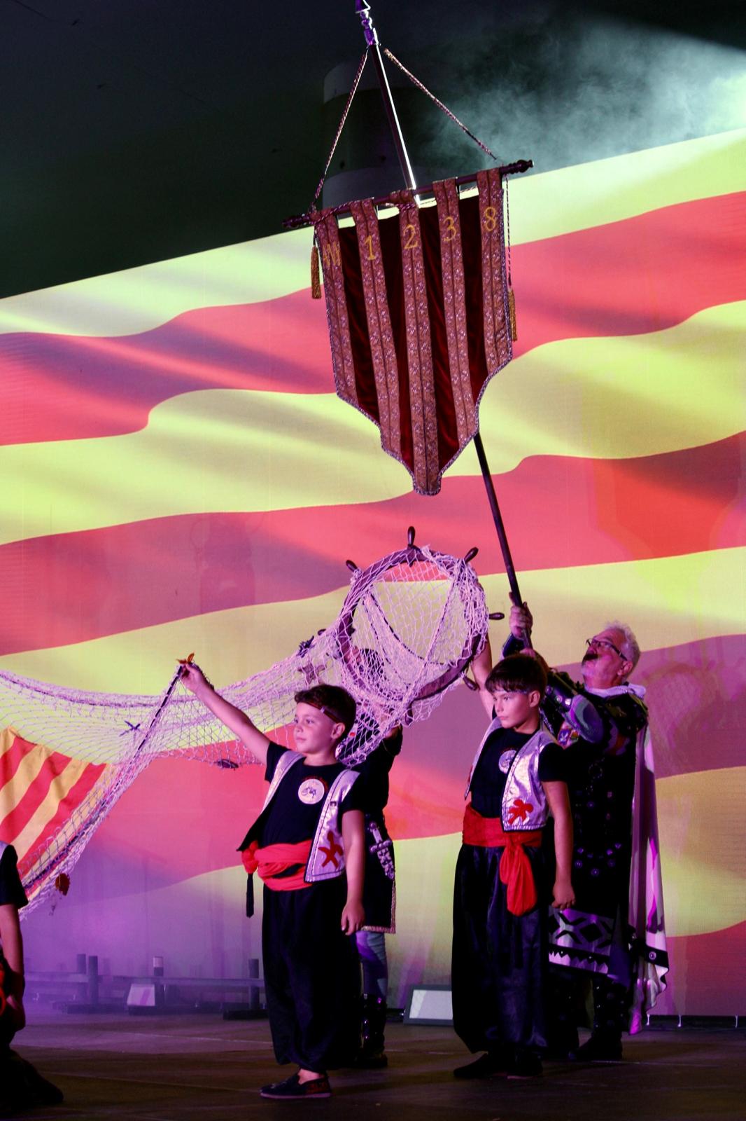 Recinto lleno, estandartes bien relucientes, cargos en su papel representativo, música festera por partida doble (la banda L’Harmonía de Alicante y la Colla Larraix de El Campello), muixaranga, senyera, nanos i gegants, cuerpos de baile listos para entrar en escena, presentadores Cristina Boix y Pere Lluís Gomis con el guion del evento bien aprendido, representantes de todos los sectores cívicos, efectivos de la Policía Local y protección Civil velando por la seguridad de todos, representante de la UNDEF (el vicepresidente Julián Fernández) y autoridades municipales en su sitio… y mucho bullicio inicial, que cesó en seco cuando el sonido de una sirena de barco anunciaba que el acto empezaba.