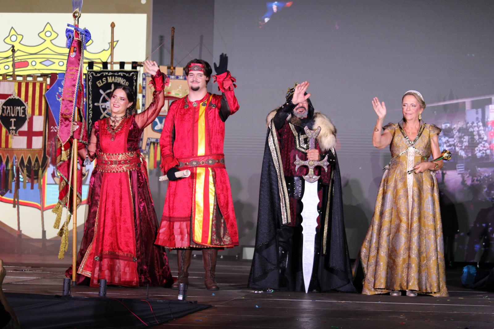 Estaban pues, como cargos salientes, los capitanes Toni Moñinos y Alejandra Vilaplana, el ambaixador Pepe Bernabé y la banderera Carla Rubio por el bando cristiano, de la comparsa Marinos, y por el bando moro el capitán Pedro Tarancón, la capitana Clara Tarancón, el ambaixador David Gomis y banderera Inés Oncina, de la comparsa Marrocs.