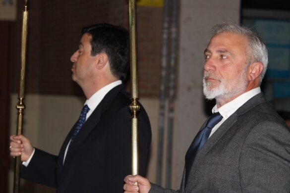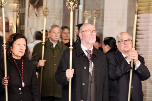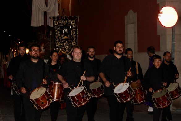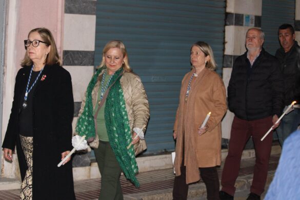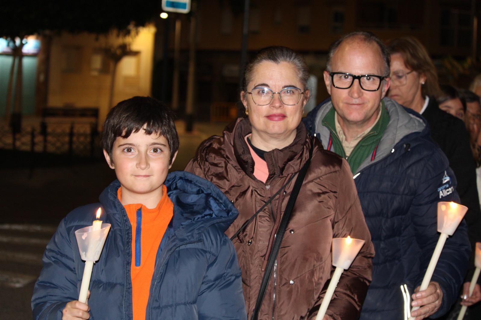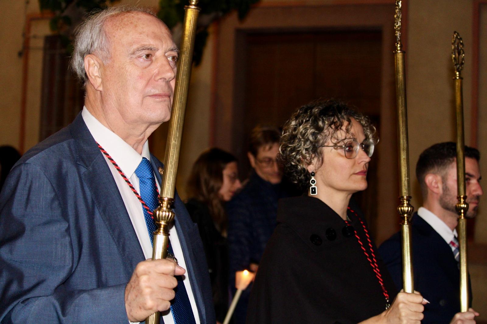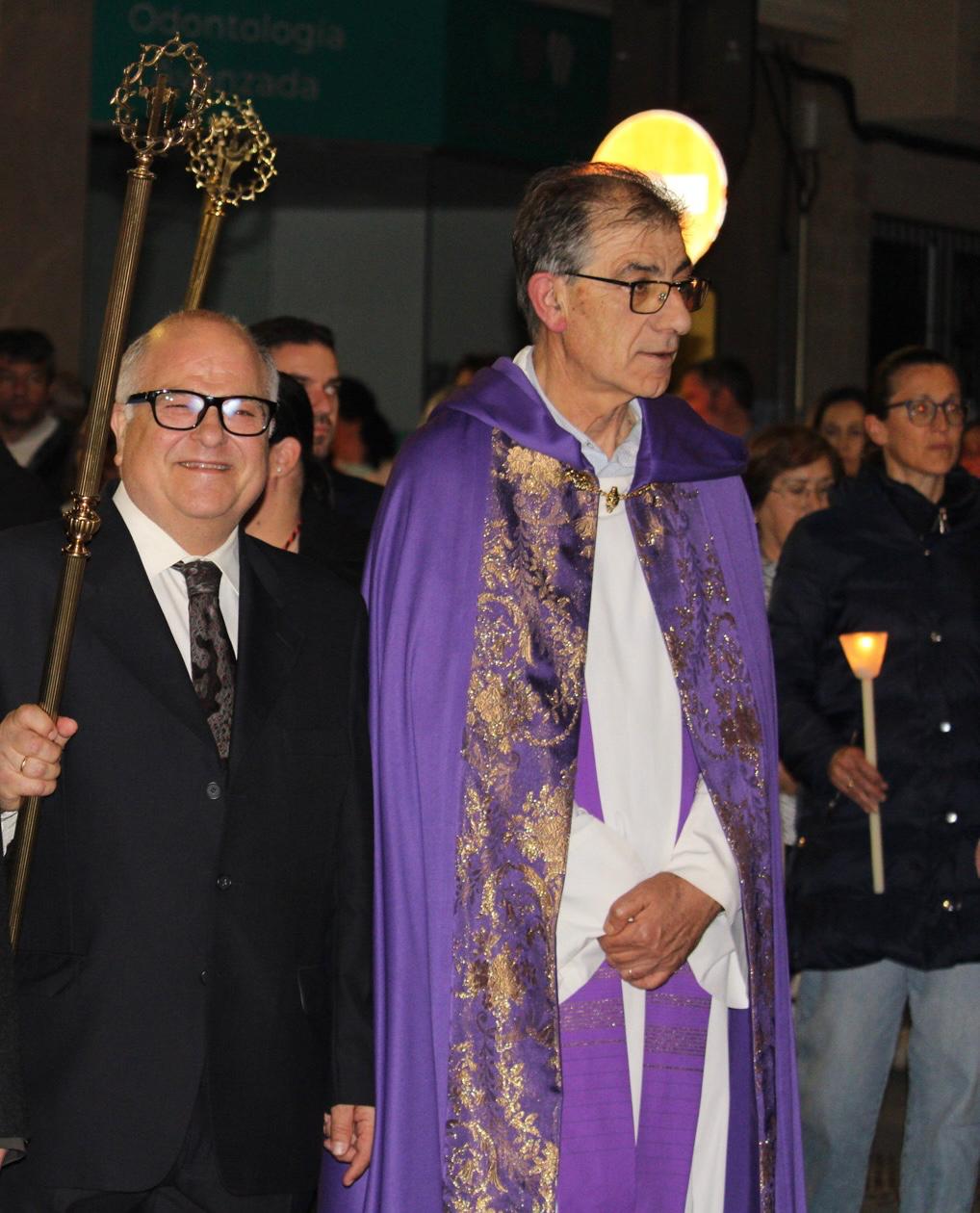 La comitiva fue amplia. A partir de las 22:00 horas, la Cruz Parroquial portada por monaguillos daba paso a tambores, emblemas, estandartes, nazarenos, damas de mantilla, la imagen de La Verónica, la Cruz con el Santo Sudario, lienzos de la Santa Faz, el paso principal, las autoridades religiosas y la representación de la autoridad civil, integrada por varios concejales y concejalas encabezados pro el alcalde, Juanjo Berenguer.