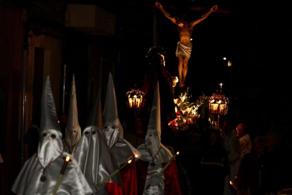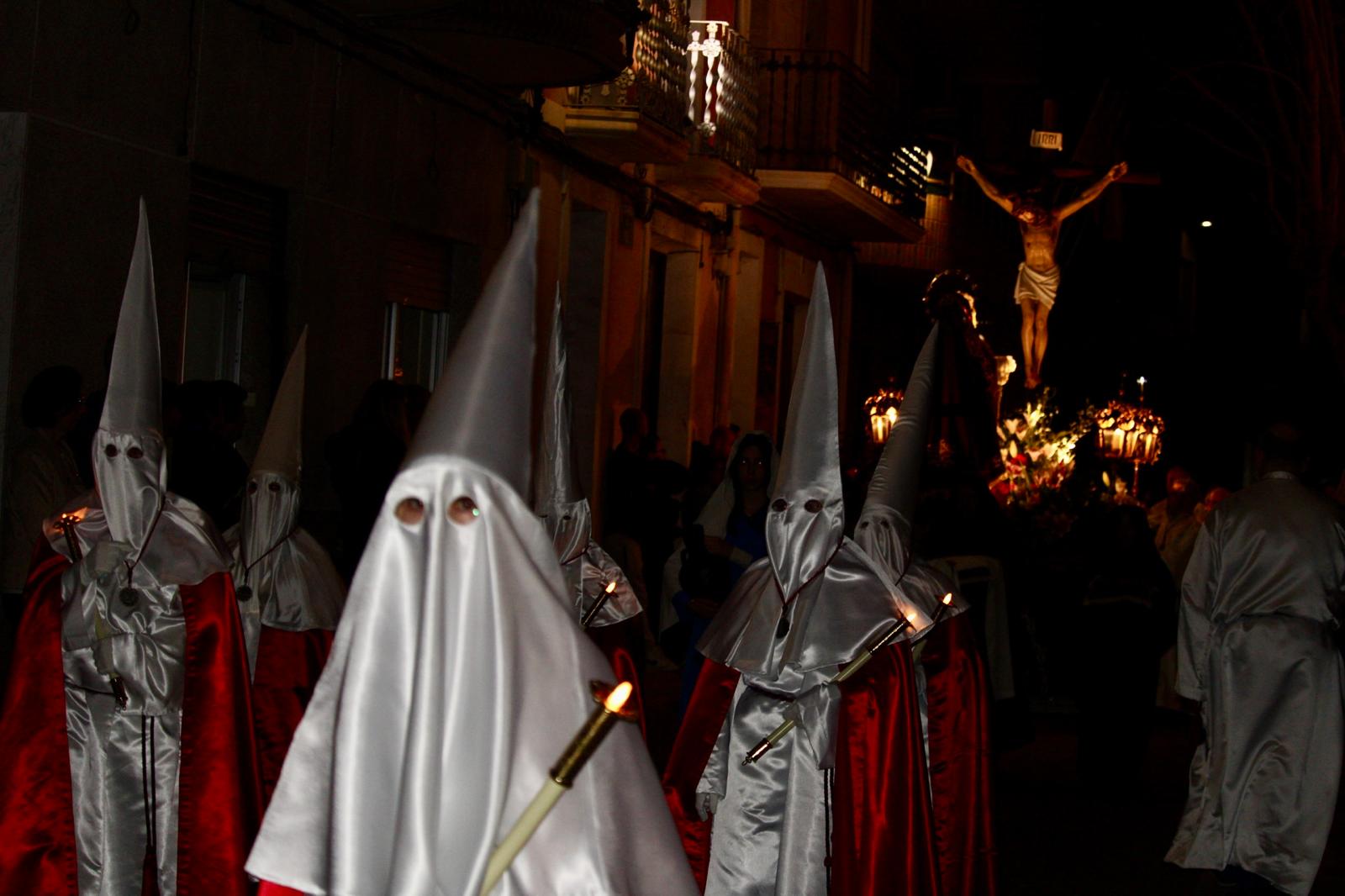 Ayer, Jueves Santo, las calles del casco urbano de El Campello acogieron la procesión del Silencio, que conmemora la pasión y muerte de Cristo, con la solemnidad que marca la tradición religiosa. Con la iluminación pública a muy baja intensidad, los participantes y el público acompañaron al paso de Cristo Crucificado con recogimiento y guardando absoluto silencio.
