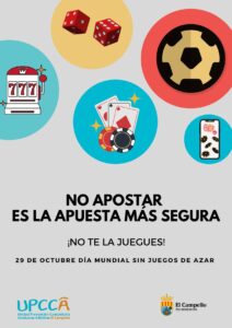 “No apostar es la apuesta más segura”, es el eslogan por el que este año ha optado la concejalía de Bienestar Social, que dirige la edil Mercé Pairó (Cs), a través de la UPCCA (Unidad de Prevención de Conductas Comunitarias Adictivas), para conmemorar el “Día Nacional Sin Juegos de Azar”.