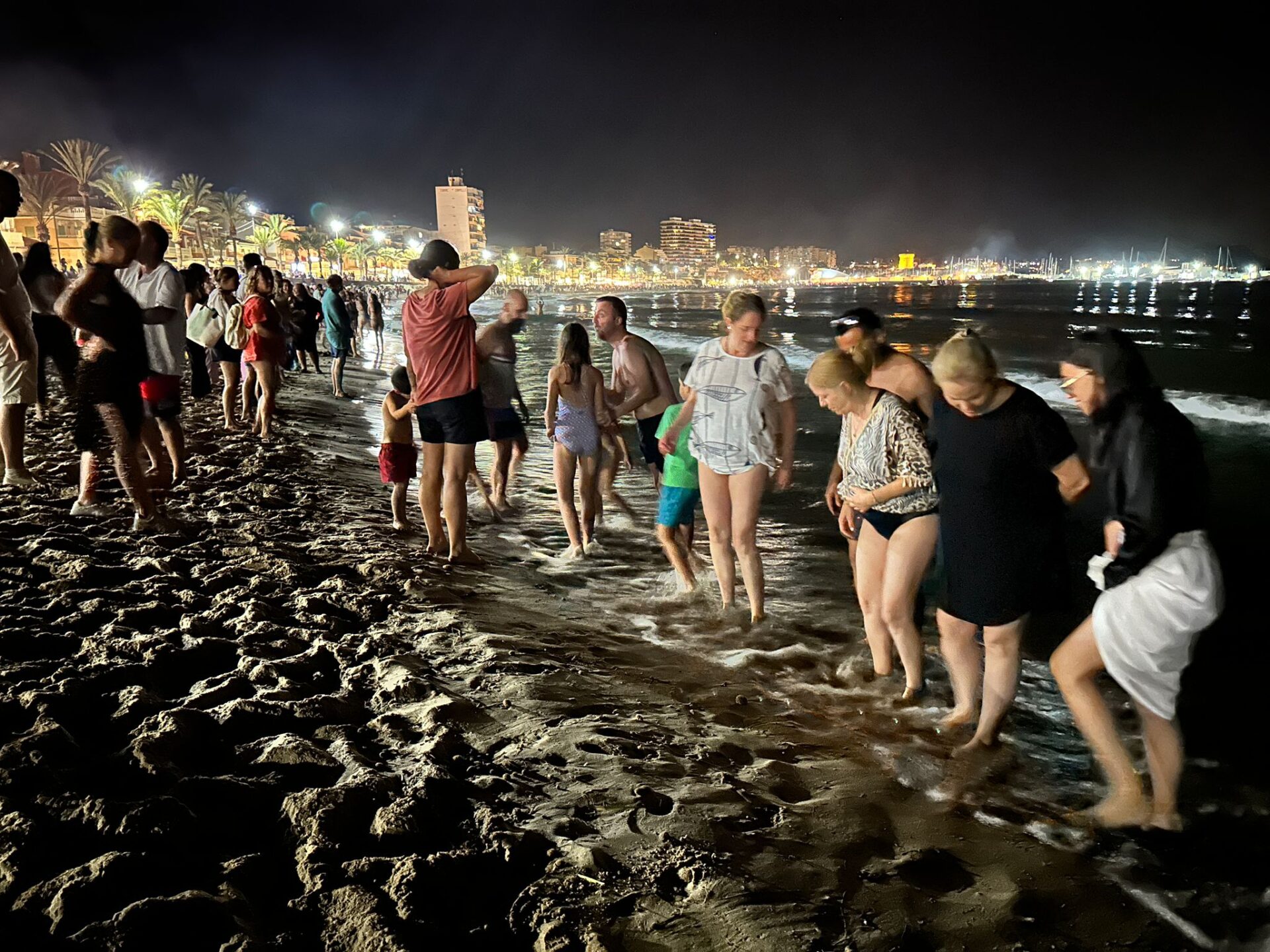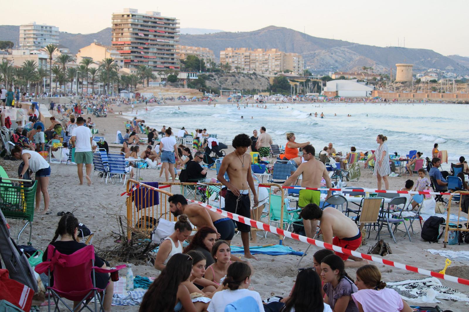 Mágica, divertida, familiar y multitudinaria fue la celebración ayer por la tarde, por la noche y de madrugada en las playas de Muchavista y Carrer la Mar de El Campello, que se vieron absolutamente desbordadas de gente. Difícil de calcular el número, pues los equipos de seguridad estaban en otros cometidos mucho más importantes para garantizar que todo transcurriera con la mayor normalidad posible, pero la Policía Local asegura que, en algunos tramos, la afluencia en la arena superaba “sin la menor duda” la de un domingo al mediodía en pleno mes de agosto.