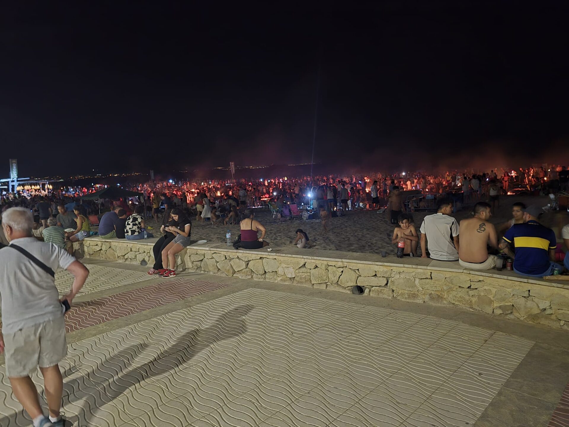 Las dos playas, y sus respectivos paseos marítimos, eran un hervidero de gente desde media tarde, cuando familias enteras tomaban posiciones en alguna de las 12 áreas acotadas para el encendido de hogueras.