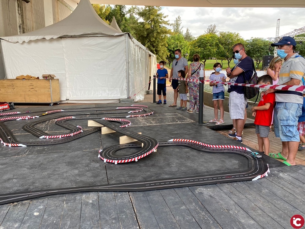 A cargo de la Comisión de Fiestas Estrella de los Mares, los chavales y chavalas disfrutan de pintura centrífuga, creación de libretas y máscaras, decoración floral, ajedrez y hasta un scalextric gigantesco que se ha convertido en el plato fuerte de las actividades.