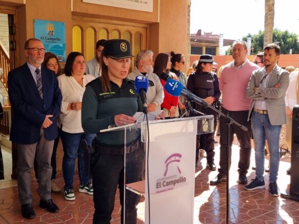 Decenas de autoridades civiles, representantes de la sociedad civil, funcionarios, vecinos e integrantes de los cuerpos de seguridad (Policía Local y Guardia Civil) han asistido hoy en la puerta del Ayuntamiento de El Campello a la lectura colectiva de la declaración institucional por el Día Internacional de la Mujer, consensuada en el seno de la Federación Española de Municipios y Provincias (FEMP).
