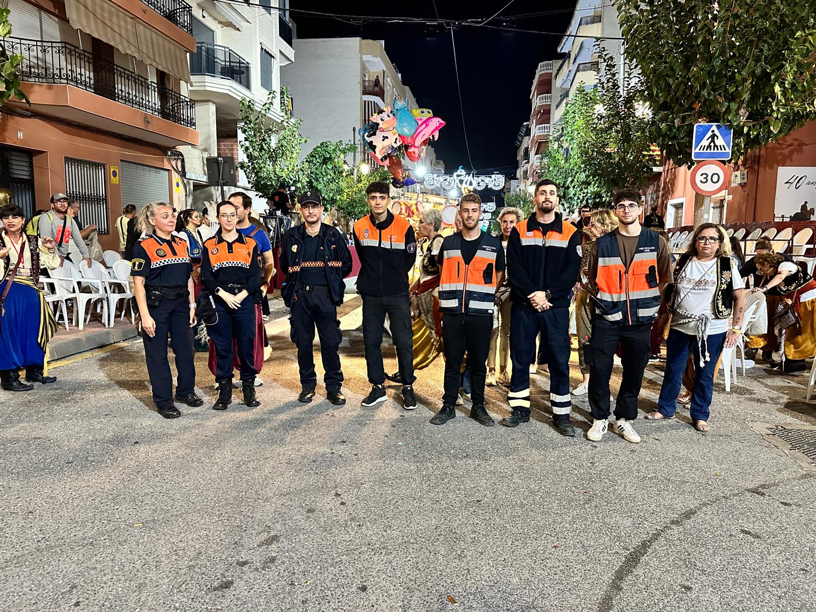 Y cerca, siempre trabajando mientras los demás se divierten, están otros elementos imprescindibles de todo festejo multitudinarios: los agentes de la Policía Local y los voluntarios de Protección Civil. Seguridad ante todo.