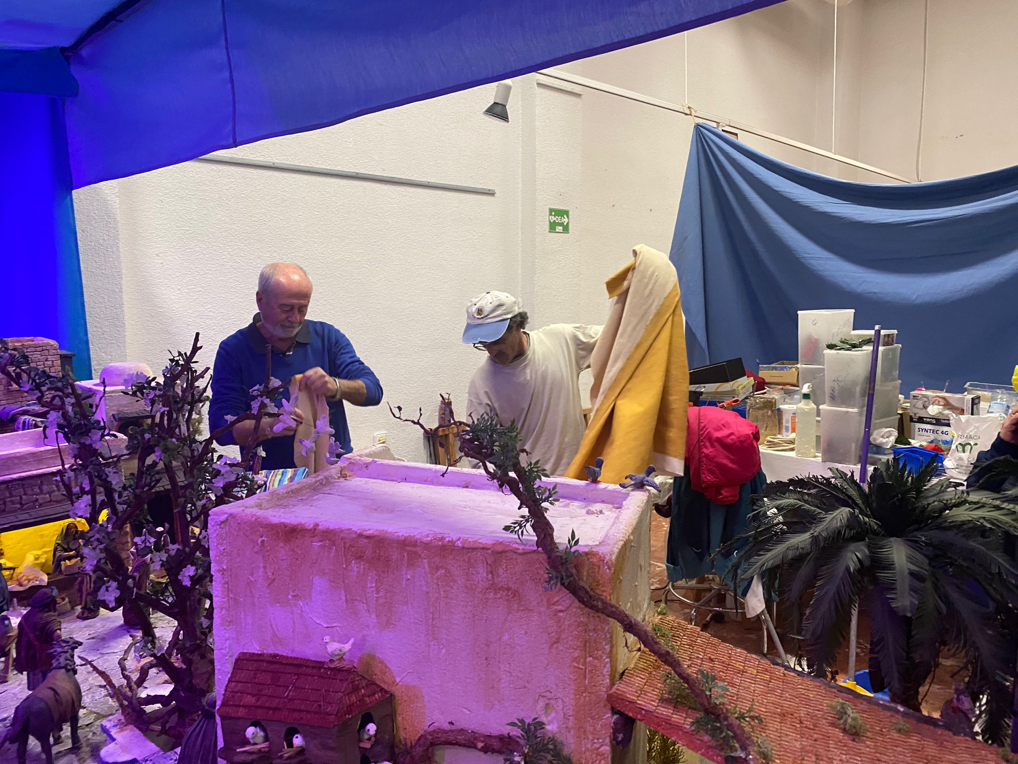 Mañana, tarde y noche, los integrantes artesanos de las Asociación Belén Municipal trabajan sin descanso para que el próximo sábado, 3 de diciembre, pueda inaugurarse su creación para este año, que están montando en el hall de la Biblioteca Municipal, donde podrá ser visitado por todos los vecinos en los horarios habituales del centro.