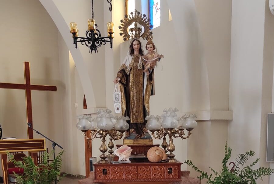 Si atractivo es el programa de actos, no lo es menos, sobre todo para los campelleros y campelleras (muy especialmente los residentes u originarios del barrio de pescadores), el hecho de que este año será la talla original de la Virgen del Carmen, que data del año 1927 y tiene un gran valor artístico y sentimental, la que se sacará en procesión, y no la réplica que se encargó en los años 80, que era la que salía al mar y recorría las calles desde 1982.