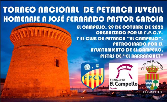 Organizado especialmente para homenajear la figura de Fernando Pastor García, mañana día 29 de octubre se celebra en las pistas junto al Centro Social El Barraquet de El Campello un torneo nacional de petanca juvenil, en el que participarán 16 parejas que jugarán bajo el sistema suizo internacional, a cuatro partidas, a 13 puntos o un tiempo máximo de 40 minutos.