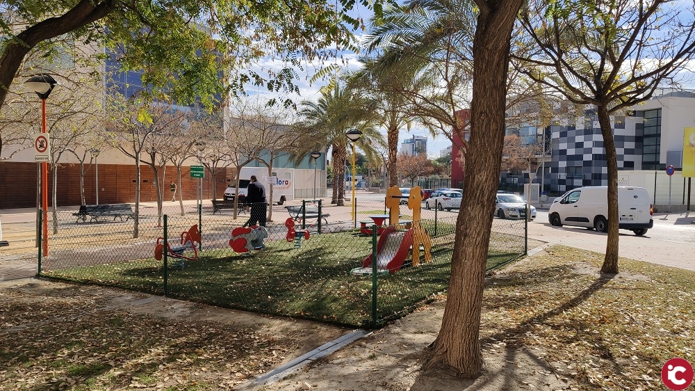 Concretamente, los operarios de la concejalía de Mantenimiento han reparado el firme de ambas áreas, el caucho que actúa de amortiguador de golpes, instalado césped artificial, rehabilitación y pintura de bancos, juegos y farolas y, en el caso del parque anexo al Centro Social El Barranquet, instalación de un nuevo vallado.