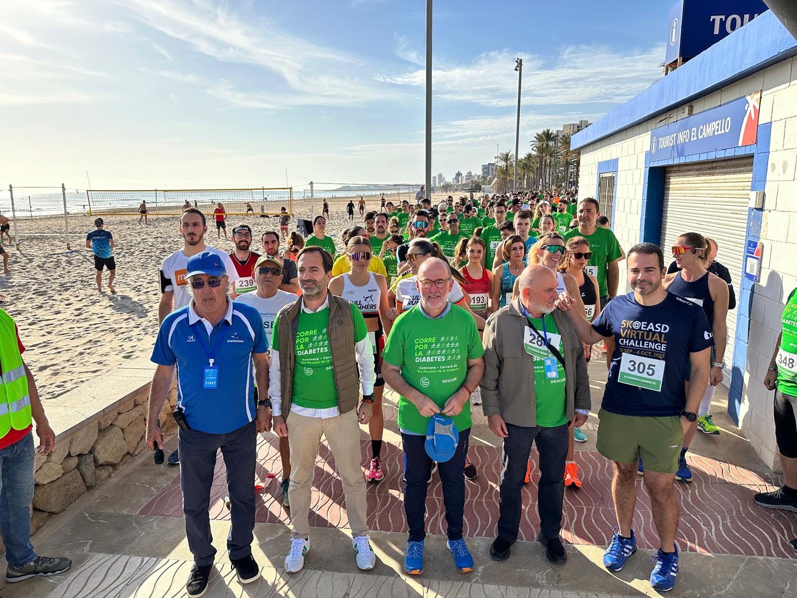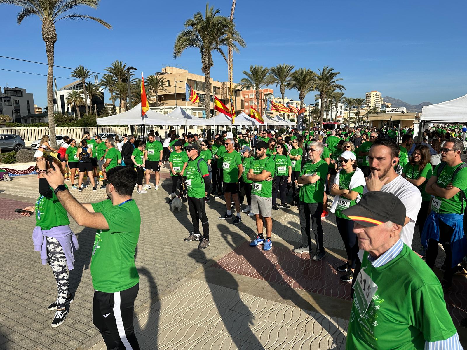 Desde bien temprano ya estaba todo el dispositivo preparado para recibir a los participantes. Carpas informativas, equipos médicos para realizar pruebas de glucosa, alumnos de las universidades de Alicante y Miguel Hernández, asociaciones vinculadas a la enfermedad de la diabetes, dispositivo de Policía Local y mucha animación.