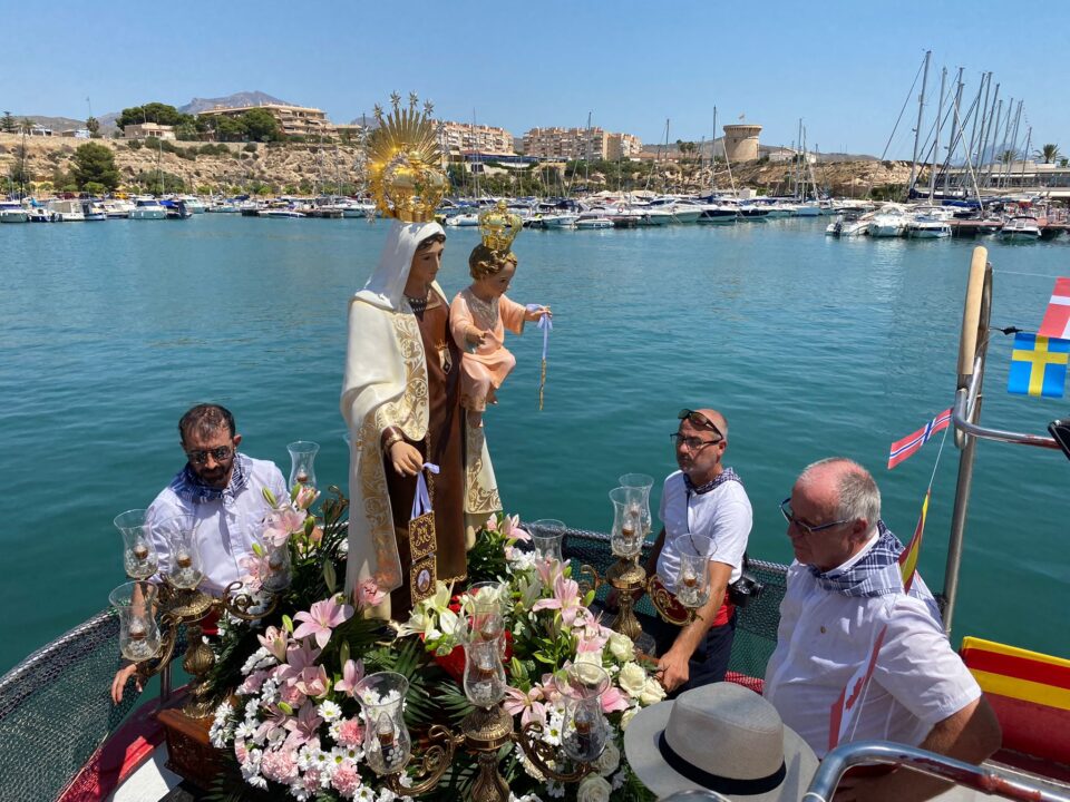 Después se ha celebrado la misa, con participación de la Agrupación Coral del Casino del Campello, abarrotada de gente y en un altar improvisado en el que destacaba la imagen de la Virgen del Carmen recién restaurada. El oficio ha finalizado con la Salve Marinera, coreada por los presentes, entre los que estaban varios concejales del Ayuntamiento encabezados por el alcalde Juanjo Berenguer, la pregonera de este año (Poupée), los directivos de la Comisión de Fiestas Estrella de los Mares, representantes de la Cofradía de Pescadores y de diversos colectivos sociales de todo tipo, y miembros de Protección Civil, Policía Local y Guardia Civil.