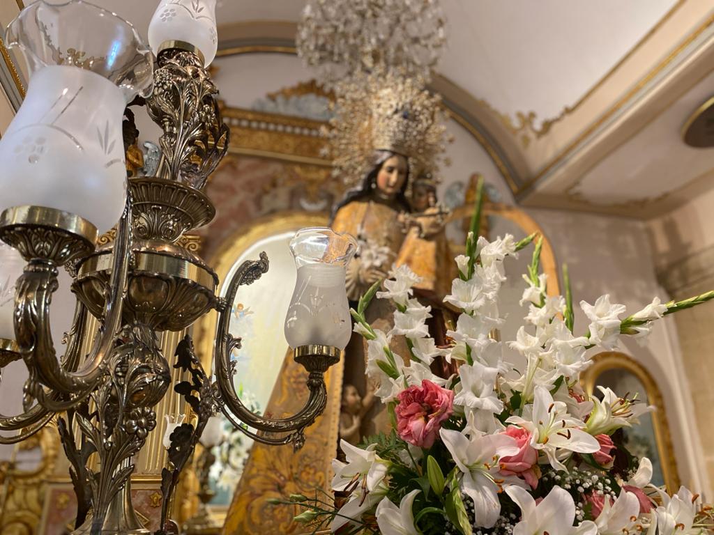 En esta ocasión, las flores han ganado por goleada a los alimentos ofrecidos a la Santa, aunque los 500 kilos de comida recogidos servirán para nutrir las estanterías de Cáritas, destinataria última de las donaciones.
