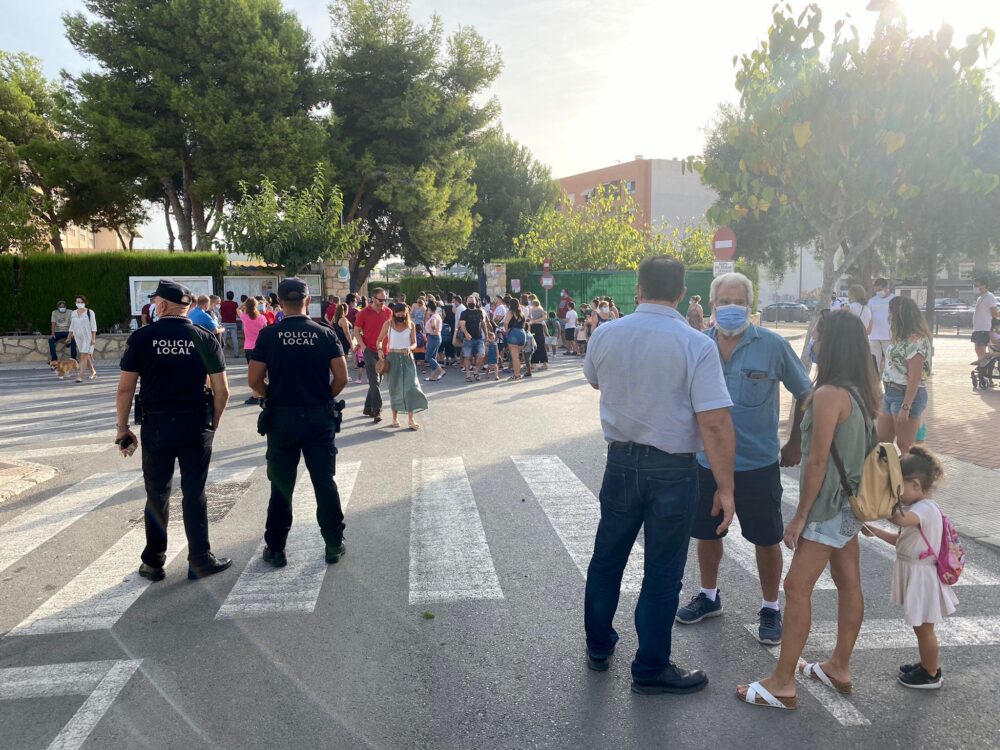 Normalidad absoluta en la vuelta al cole de El Campello, donde hoy han comenzado el curso más de 2.000 alumnos de los colegios de primaria públicos y privados del municipio. El dispositivo policial, que se mantendrá durante todo el curso en los horarios de entrada y salida para regular el tráfico y garantizar la seguridad en horas punta, ha servido para adaptar actuaciones a las nuevas circunstancias y comprobar que tanto cuerpos docentes como padres y alumnos están muy concienciados de que seguimos en pandemia, y el uso de mascarilla en la es cuela es obligatorio.