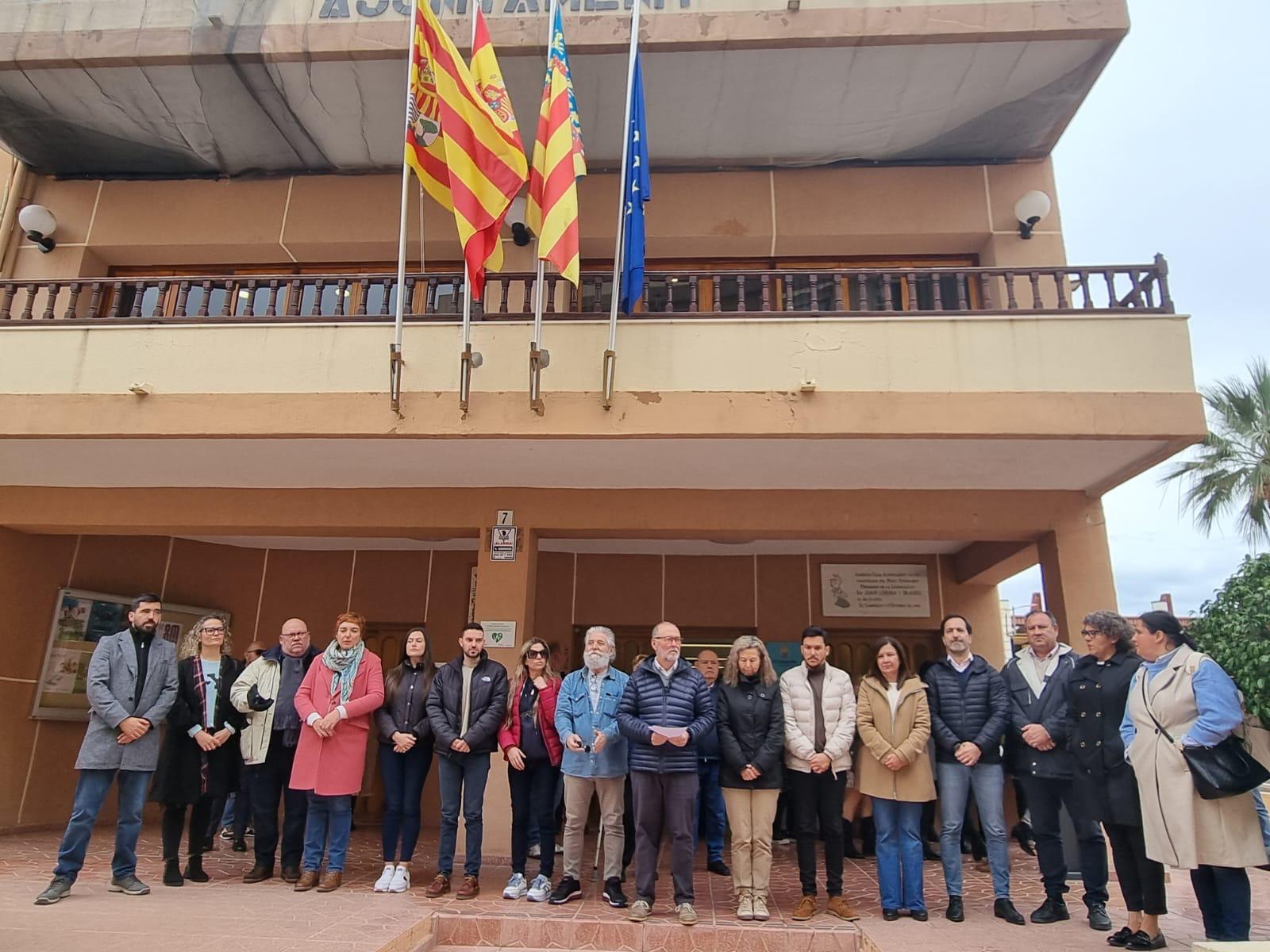 Ante la dramática cifra de fallecidos, heridos y personas afectadas por la pérdida de sus hogares, el Ayuntamiento ha secundado la convocatoria de la Federación Española de Municipios y Provincias (FEMP), “como muestra de su pesar con los fallecidos y sus familias, con los heridos y con las personas afectadas, y como manifestación de solidaridad con todos ellos, con el Ayuntamiento y con toda la ciudadanía”, ha señalado el alcalde Juanjo Berenguer, acompañado por cargos públicos de todos los partidos políticos con representación municipal, funcionarios, integrantes de la Policía Local y vecinos.
