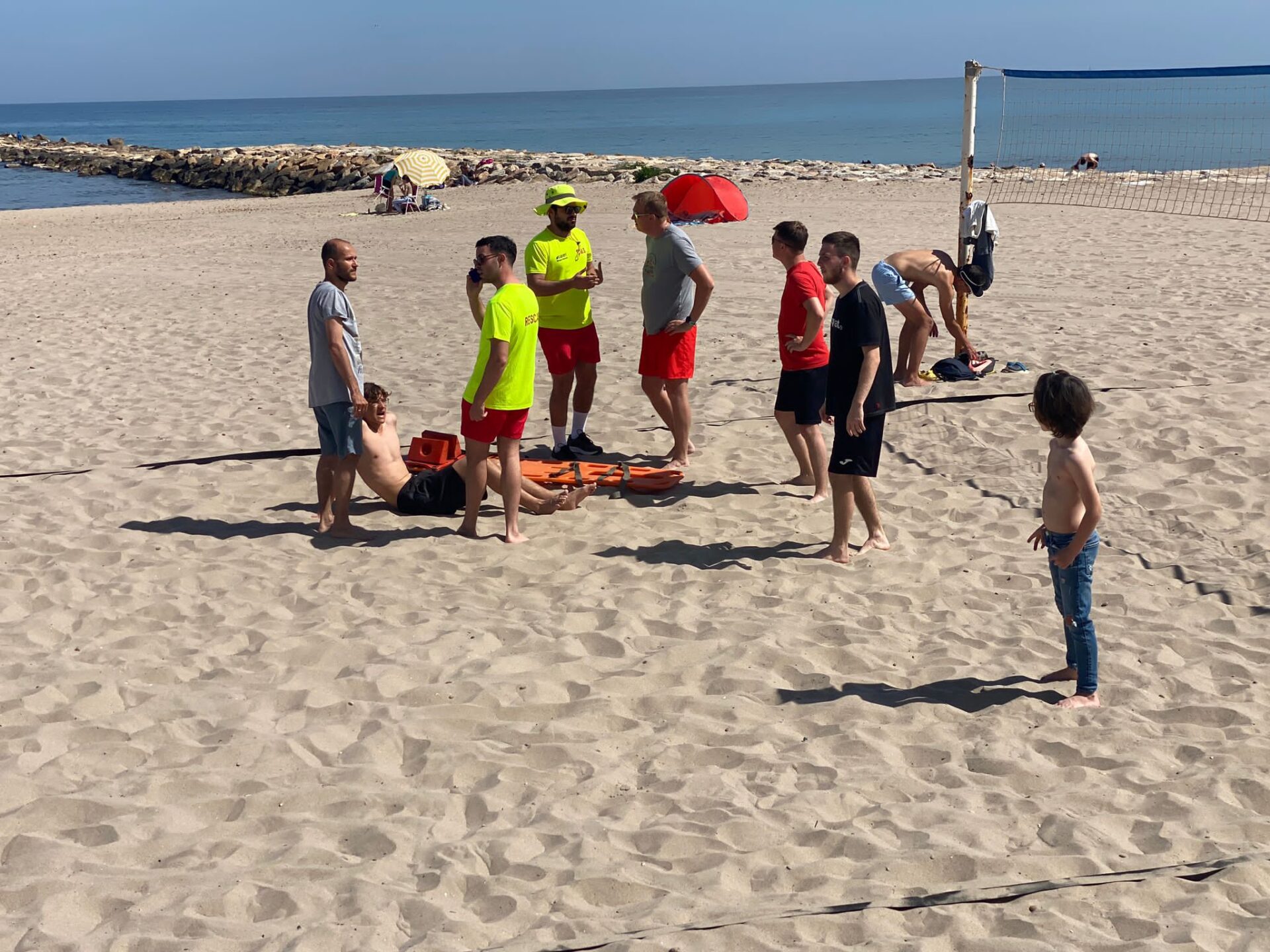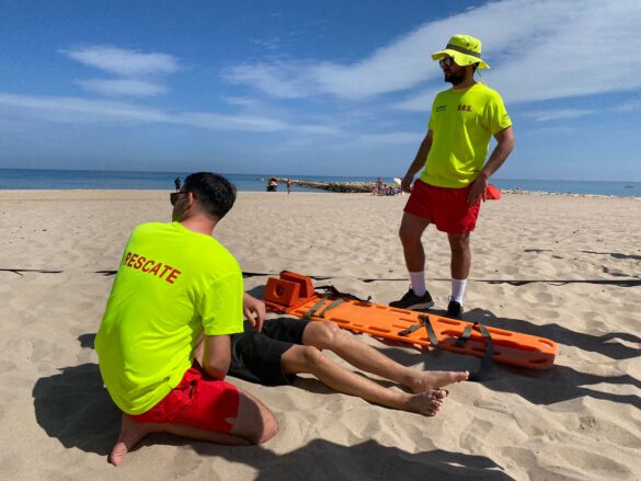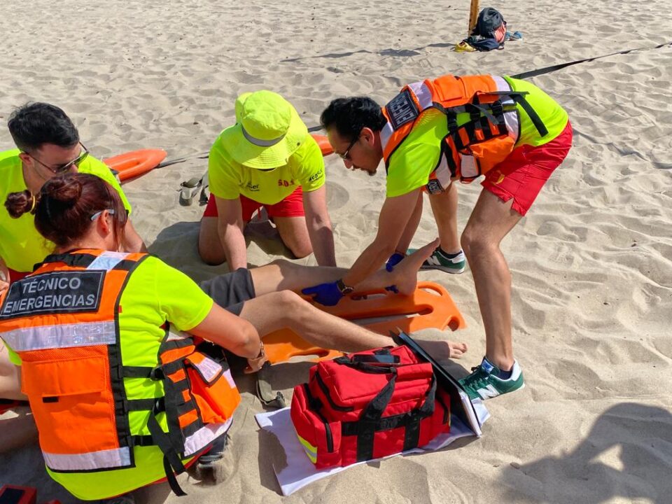 Fue el padre del joven quien avisó a los servicios de emergencia playeros. Se trataba de una rodilla luxada por el golpe que requirió de tablero espinal, hielo químico para calmar el dolor y estabilización de una rodilla flexionada. El vehículo de intervención rápida trasladó al herido al puesto de socorrismo. Cuando llegaron los sanitarios, se le puso una férula rígida y se le trasladó al hospital. Buena y rápida intervención que supuso la primera prueba del servicio que se mantendrá durante los próximos meses.