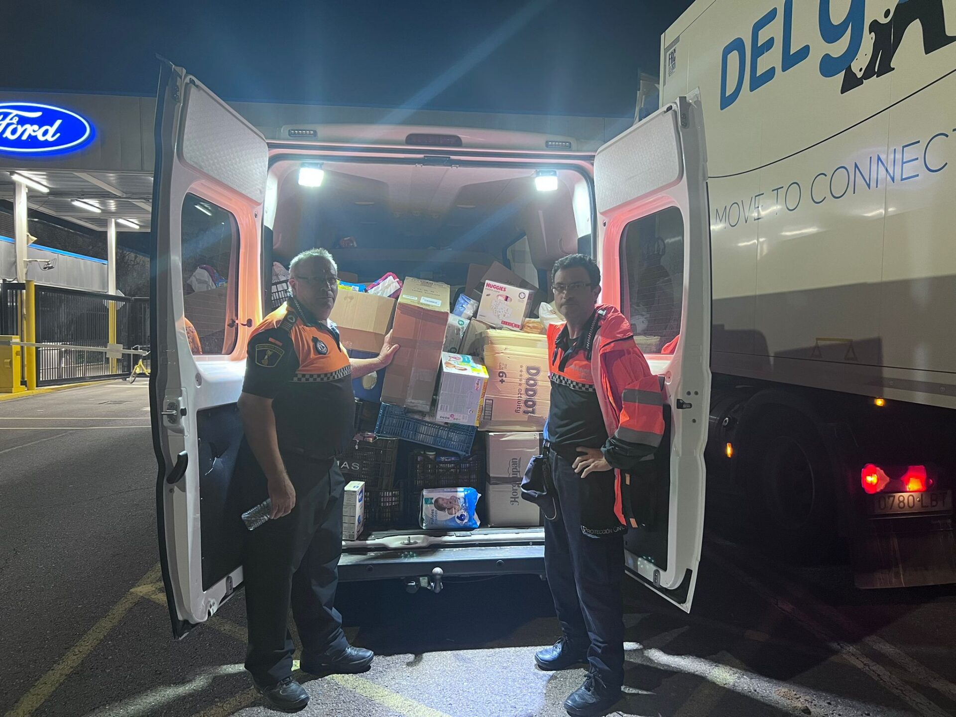 Los vehículos, que han escoltado patrullas de voluntarios de Protección Civil, iban llenos hasta no poder más de alimentos infantiles, agua, leche, papel higiénico y pañales para niños y mayores, además de 10.000 mascarillas donadas por el colegio público El Fabraquer. La solidaridad de El Campello no tiene límites. La población se ha volcado de forma abrumadora, que llega a sobrecoger.