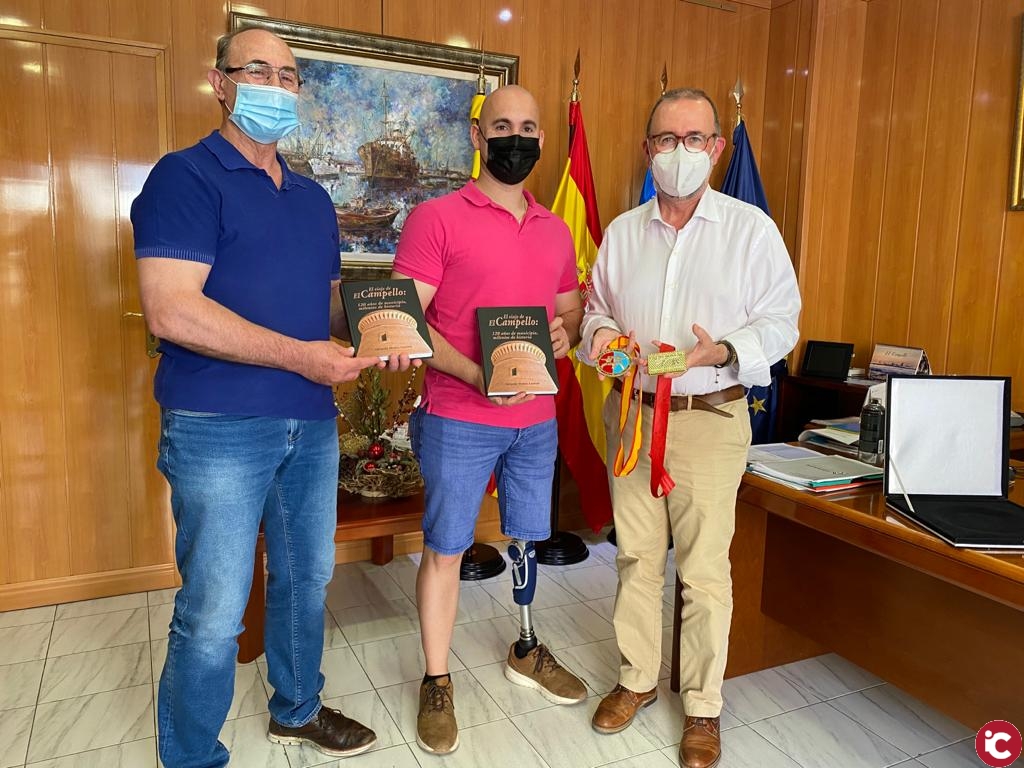 Juan Antonio Sepulcre mostró al primer edil las dos medallas de Europa conseguidas, ya que el título de campeón de Europa ya lo consiguió en el año 2019. Por su parte, Juanjo Berenguer hizo entrega a los deportistas de un ejemplar del libro “El viaje de El Campello: 120 años de municipio, milenios de historia”, con sus mejores deseos de éxitos futuros.