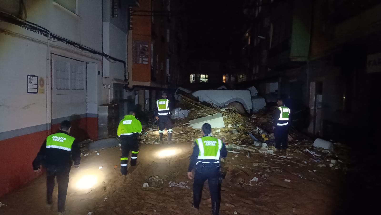 Primer relevo. Tras una larga e intensa noche de vigilancia, ayuda a los damnificados e inspección minuciosa en búsqueda de víctimas, los seis agentes de la Policía Local de El Campello que ayer se incorporaron al dispositivo especial y coordinado para atender las consecuencias desastrosas de la DANA en el municipio valenciano de Paiporta han regresado a sus casas para descansar.