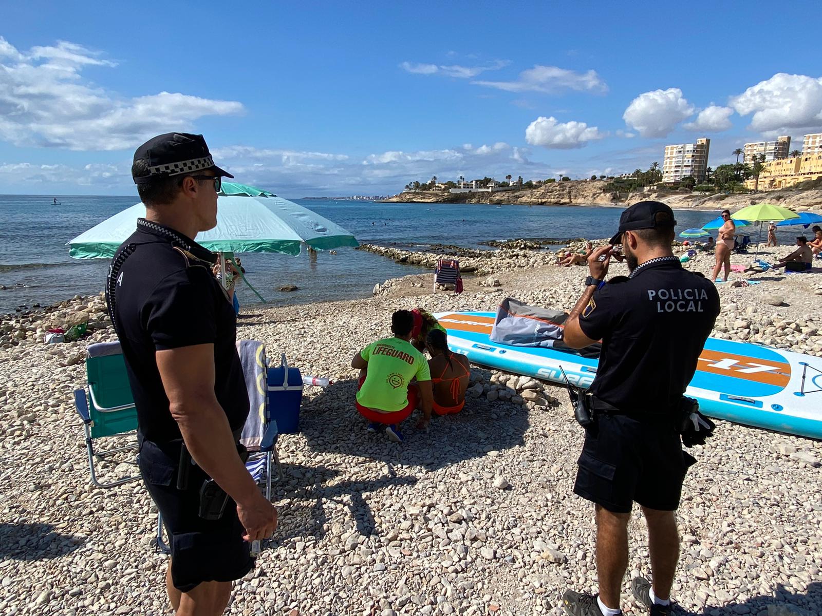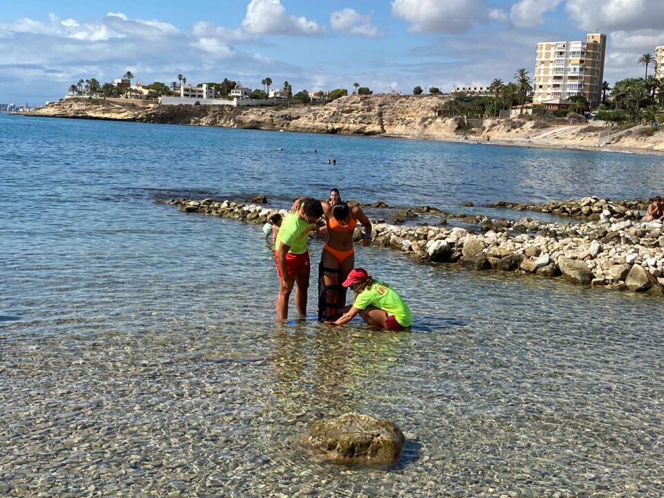 Los socorristas fueron los primeros en movilizarse, entrando en el mar para dar flotabilidad a la víctima del accidente y estabilizar la rotura. Inmediatamente fueron avisados los servicios de botiquín, Policía Local y ambulancia, que tras avaluar la situación ordenaron la salida del agua, colocación de estabilizadores y tablero espinal y la evacuación de la mujer en ambulancia a un centro hospitalario.