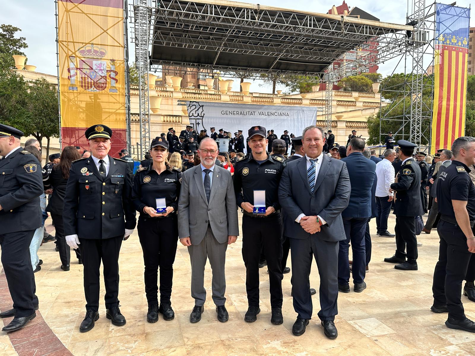 Hasta Benidorm se desplazaron para asistir al acto y felicitar a los agentes (dos hombres y una mujer), el alcalde Juanjo Berenguer; el comisario jefe de la Policía Local, José Antonio Cano, y el edil de Seguridad, Rafa Galvañ. Presidieron el acto presidente de la Diputación de Alicante, Toni Pérez, y el conseller del área, Juan Carlos Valderrama.
